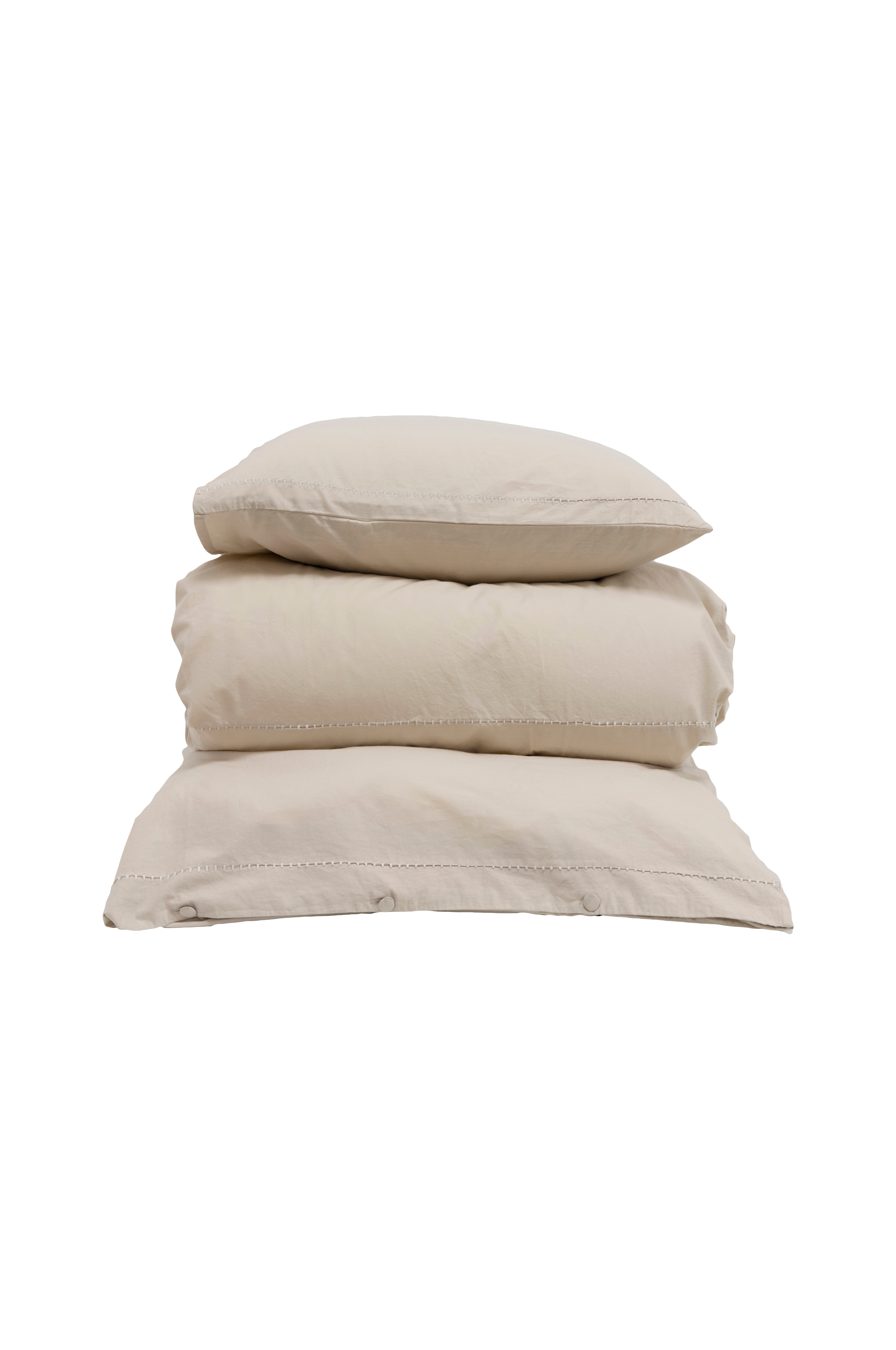 Oplev en naturlig og rustik stil med marabel-sengesættet. Det bløde og kølige stof giver en behagelig fornemmelse mod huden, perfekt til en god nats søvn. Sengesættet har knaplukninger og en broderet kant, charmerende detaljer, der giver et lille ekstra touch. Nyd komforten og den tidløse charme, som marabel-sengesættet giver dit soveværelse. 50% genanvendt bomuld og 50% bci-certificeret bomuld. 2 cm oxfordramme i toppen af pudebetrækket. Broderet søm på både dynebetræk og pudebetræk. Pudebetræk med sideåbning og flap, stofknapper i bunden af dynebetrækket. Pakket i en eksklusiv gaveæske. Dette produkt er en del af gustav ovlands kollektion, stärkelsefabriken. Størrelsen på sengesættet 140x200, inkluderer 1 dynebetræk og 1 pudebetræk, 60x63 cm. Størrelsen på sengesættet 140x220, inkluderer 1 dynebetræk og 1 pudebetræk, 60x63 cm. Størrelsen på sengesættet 200x220 inkluderer 1 dynebetræk og 2 pudebetræk, 60x63 cm.