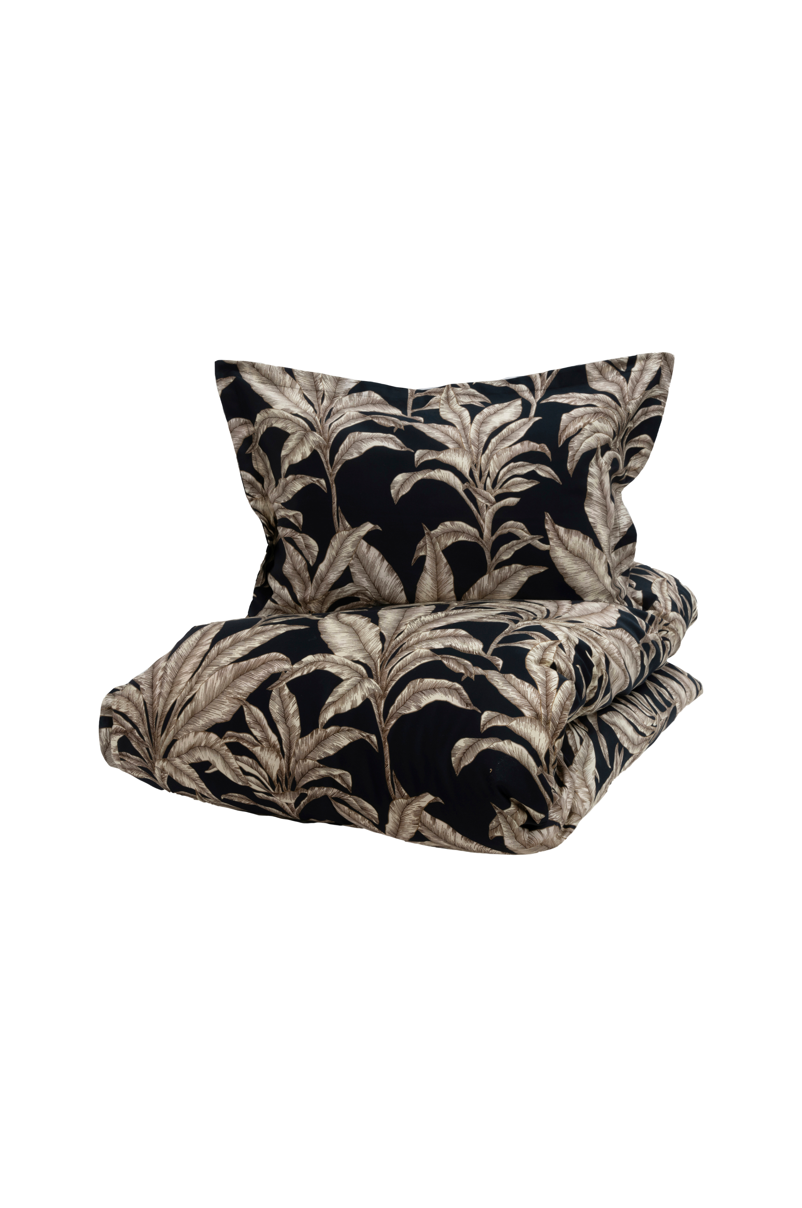 Babylonstoren er en historisk gård og vinproducent i Western Cape-provinsen, der er kendt for sin smukke og velholdte have og selvfølgelig sine lækre vine, der er fremstillet med omhu og dygtighed. Palmemønsteret i dette sengetøj fra Halvor Bakke giver associationer til varmere klimaer, og det grafiske løv giver en markant mønstret kontrast til den mørke baggrund. Kvaliteten er som altid en eksklusiv og smuk satin, der forstærker dybden i designet og gør det helt fantastisk. - 100% bomuldssatin Tc 400. - Øko-Tex-certificeret. - 3 cm Oxford-ramme på pudebetræk og 2 cm Oxford-ramme på dynebetræk. - Lynlås i bunden af dynebetræk og pudebetræk. - Pakket i en smuk gaveæske. - Sengesættet består af 1 dynebetræk og 1 pudebetræk i størrelse 60x63.
