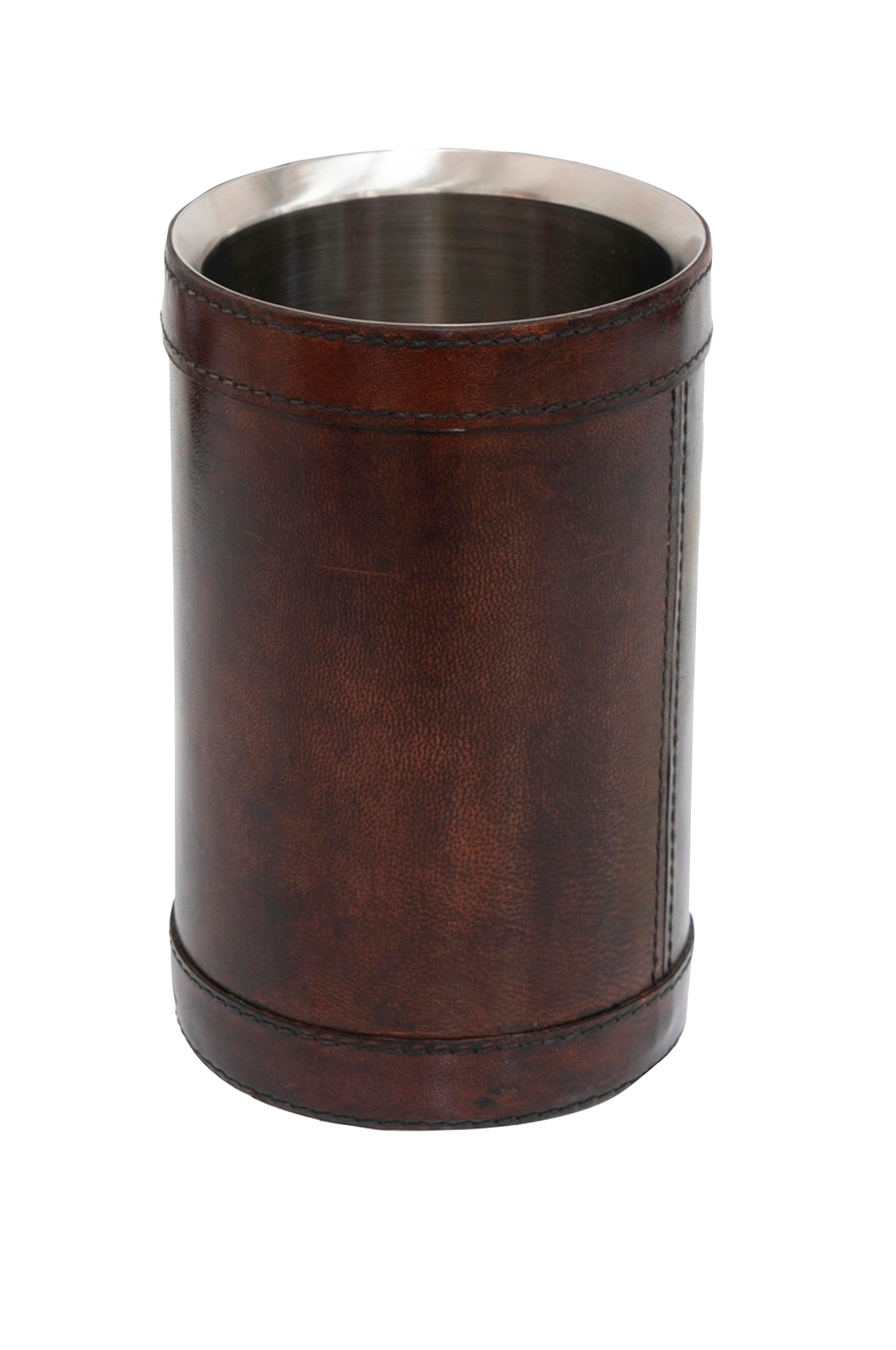 Hold din drink perfekt tempereret med en stilfuld vinkøler pakket ind i brunt læder. Den giver et sofistikeret touch til bordet og er lige så dekorativ, når den står fremme mellem brug. Et ideelt tilbehør til enhver lejlighed. Materiale: læder og stål. Til én flaske. Vinkøleren er en del af Halvor Bakkens kollektion
