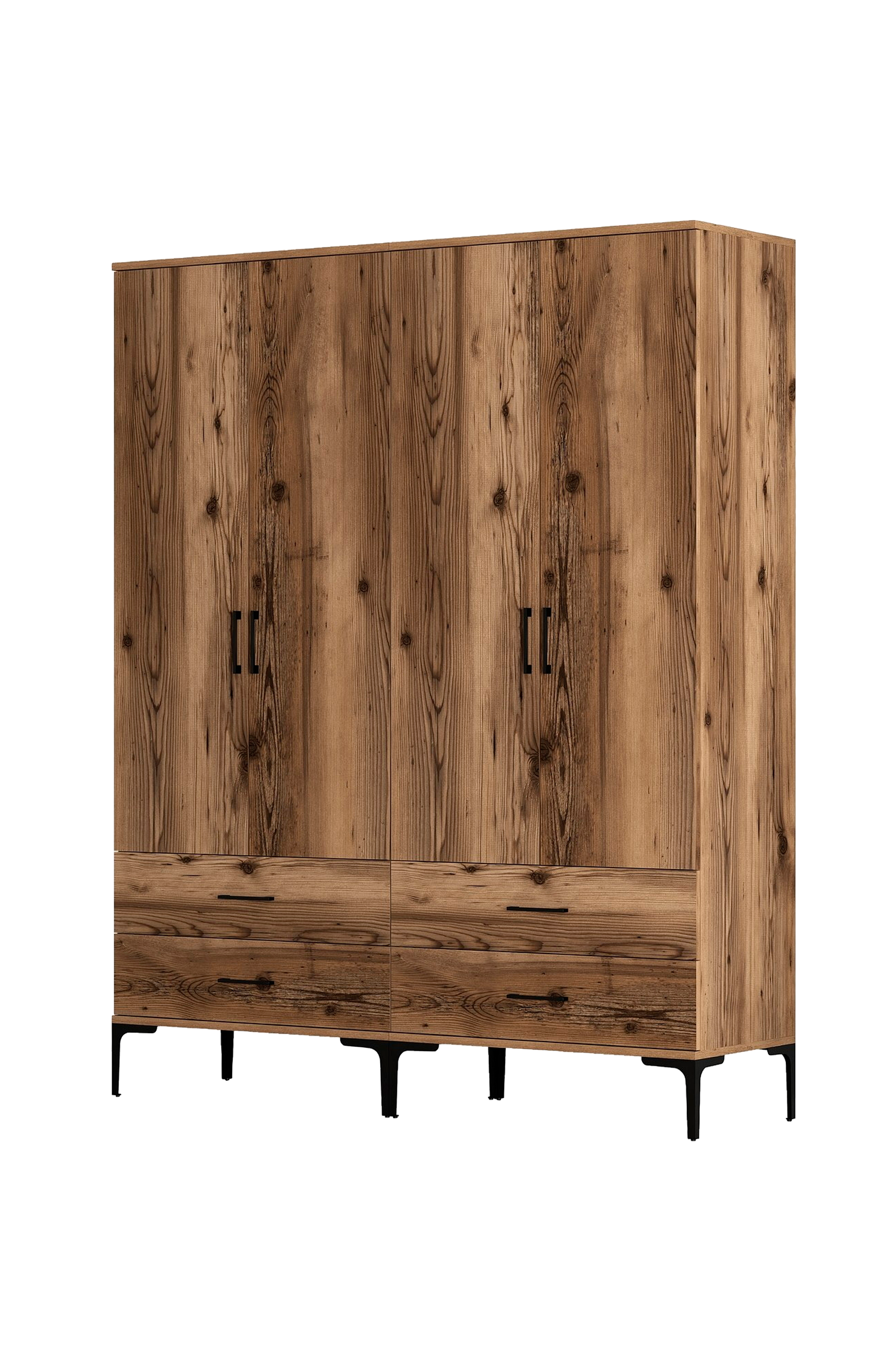 Flot og solid garderobe. Desværre lidt for fremstående skruehoveder, hvilket får skufferne til at sidde fast i skinnerne.
