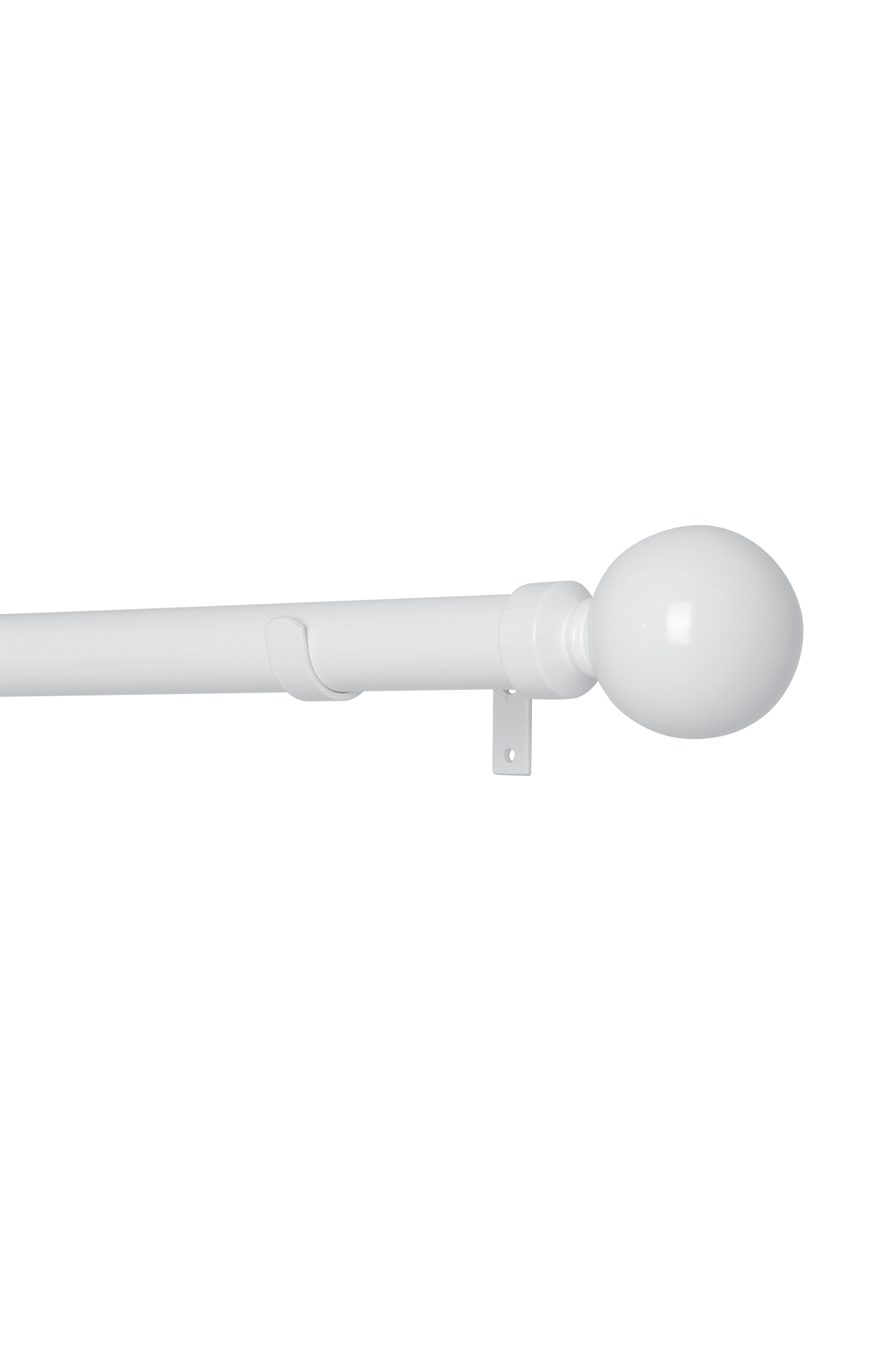Komplet gardinstang i metal (25/28 mm) med kugleformede finials. Sættet indeholder justerbare stænger (110-200 cm), 2 finials og 3 justerbare vægbeslag (7-9 cm).