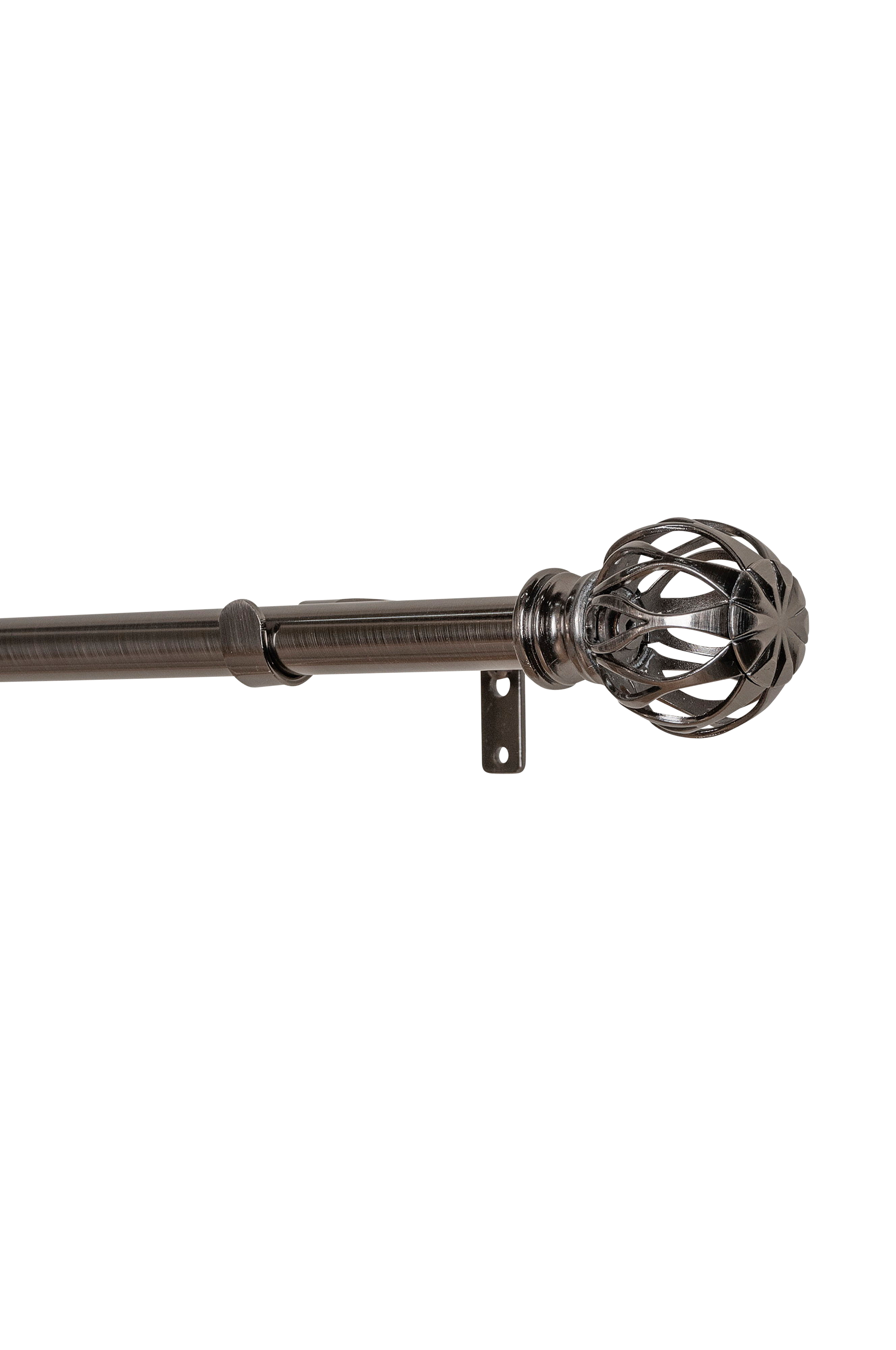 Komplet gardinstang i metal (13/16 mm) med dekorative finials. Sættet indeholder justerbare stænger (110-200 cm), 2 finials og 3 justerbare vægbeslag (10,5-12 cm).