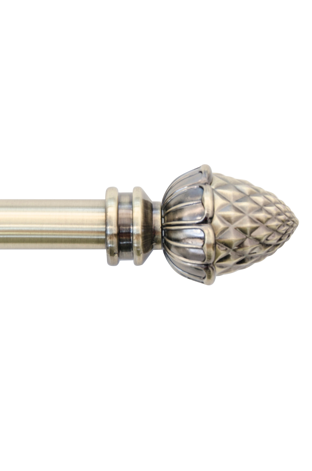 Komplet klassisk gardinstang i metal, 25/28 mm. Sættet indeholder justerbare stænger 130-240 cm, 2 endeknopper og 3 justerbare vægbeslag (9-14 cm). Knoppens længde 9 cm.