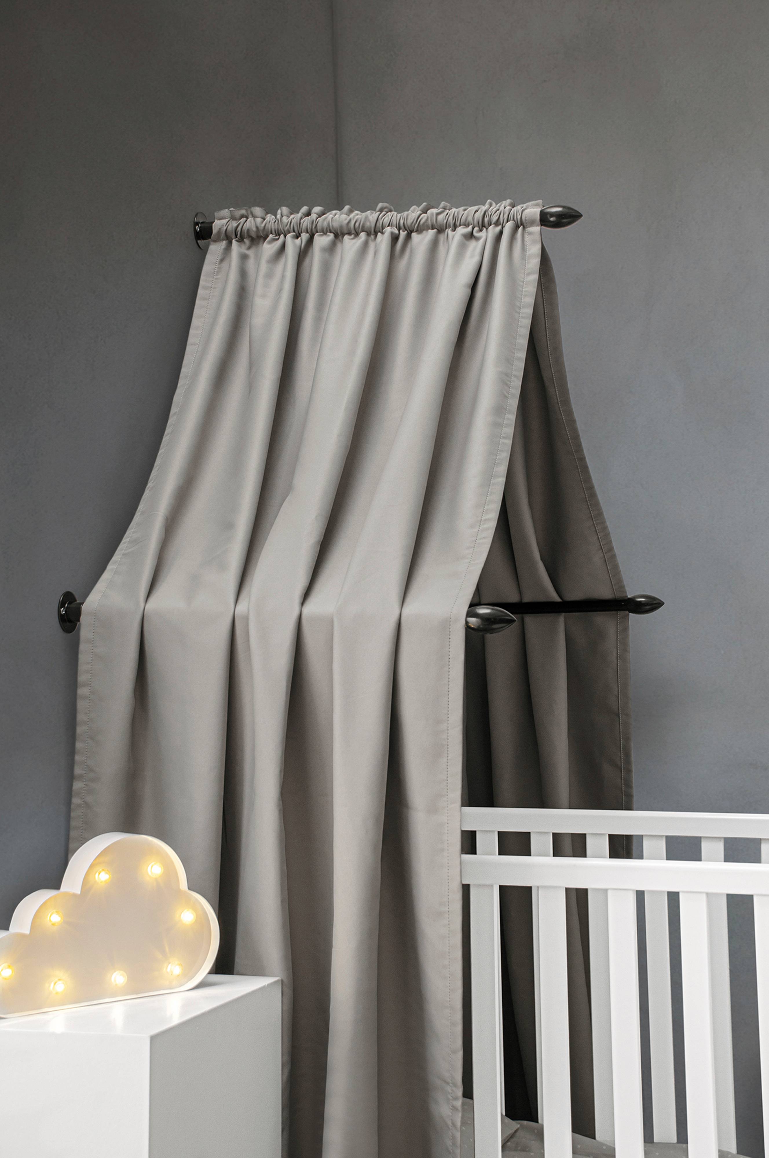 Sengehimmel i klassisk look med 3 stænger i metal. Stængerne kan placeres med forskellige afstande til hinanden afhængigt af, hvor bred du vil have din sengehimmel.