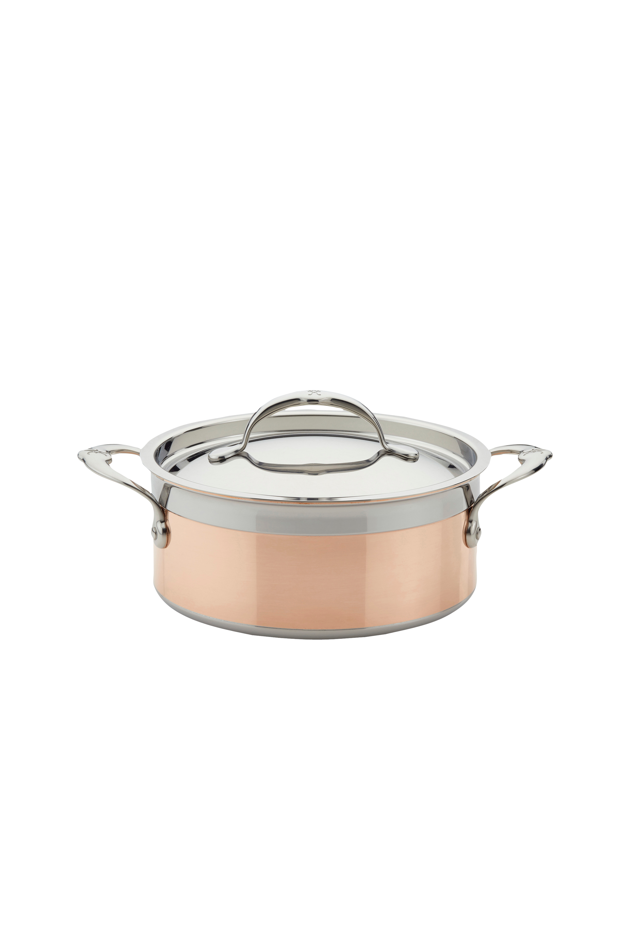 Den nye håndlavede CopperBond-kollektion fra Hestan har en holdbar fem-lags rustfri stålkonstruktion med en 100% ren kobberkerne, der giver hurtig og jævn opvarmning med exceptionel temperaturkontrol. Låget i rustfrit stål sidder tæt på kanten for at bevare aromaerne i smagfulde supper, saucer og gryderetter.