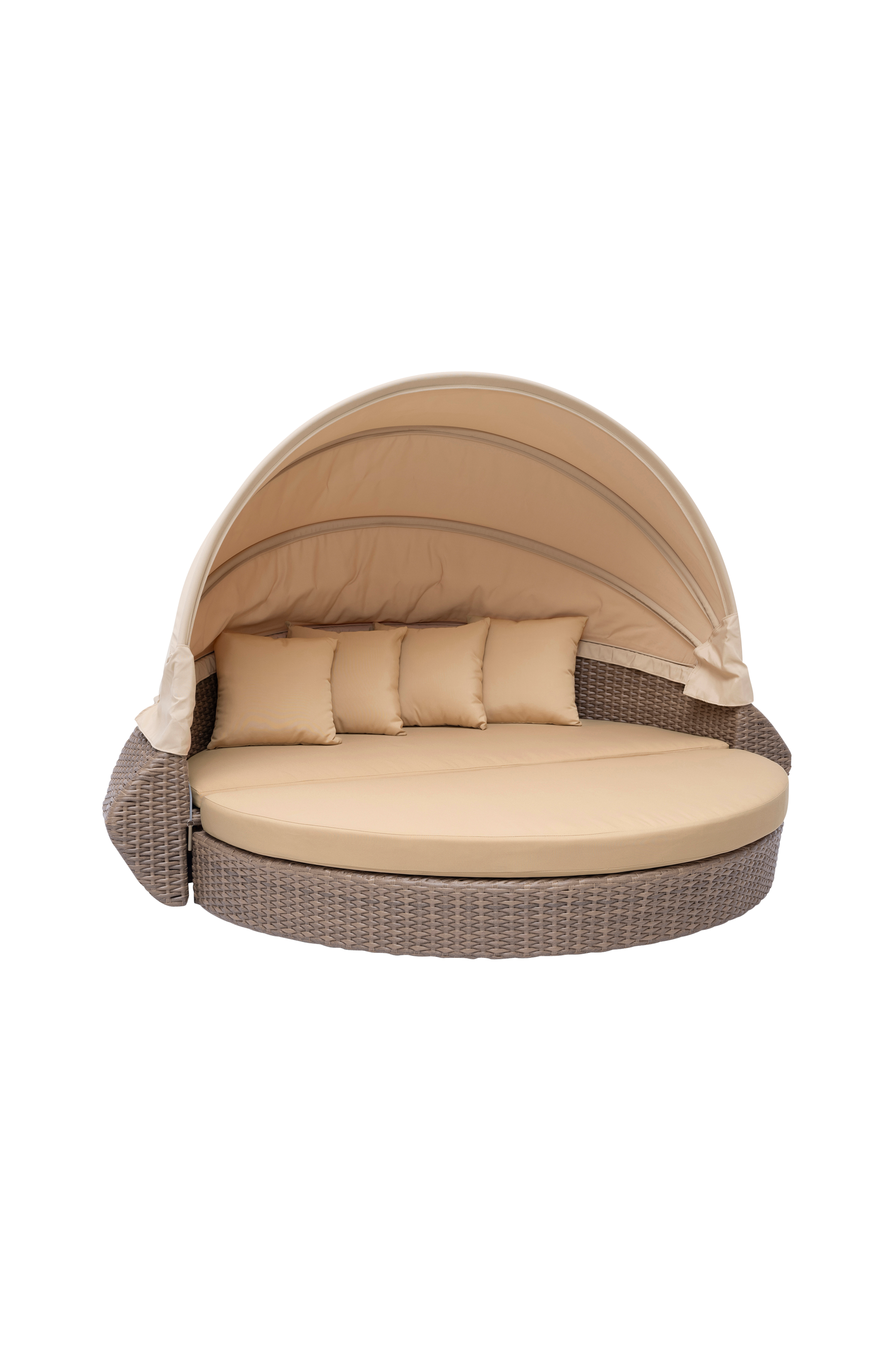 Slap af en varm sommerdag i loungesofaen Callao. En loungesofa i 1-trådet naturfarvet Quato™-kunstrotting med solbeskyttelse. Sofaens underdel kan foldes ud for at maksimere siddearealet. Naturfarvede hynder medfølger. Lettere samling.