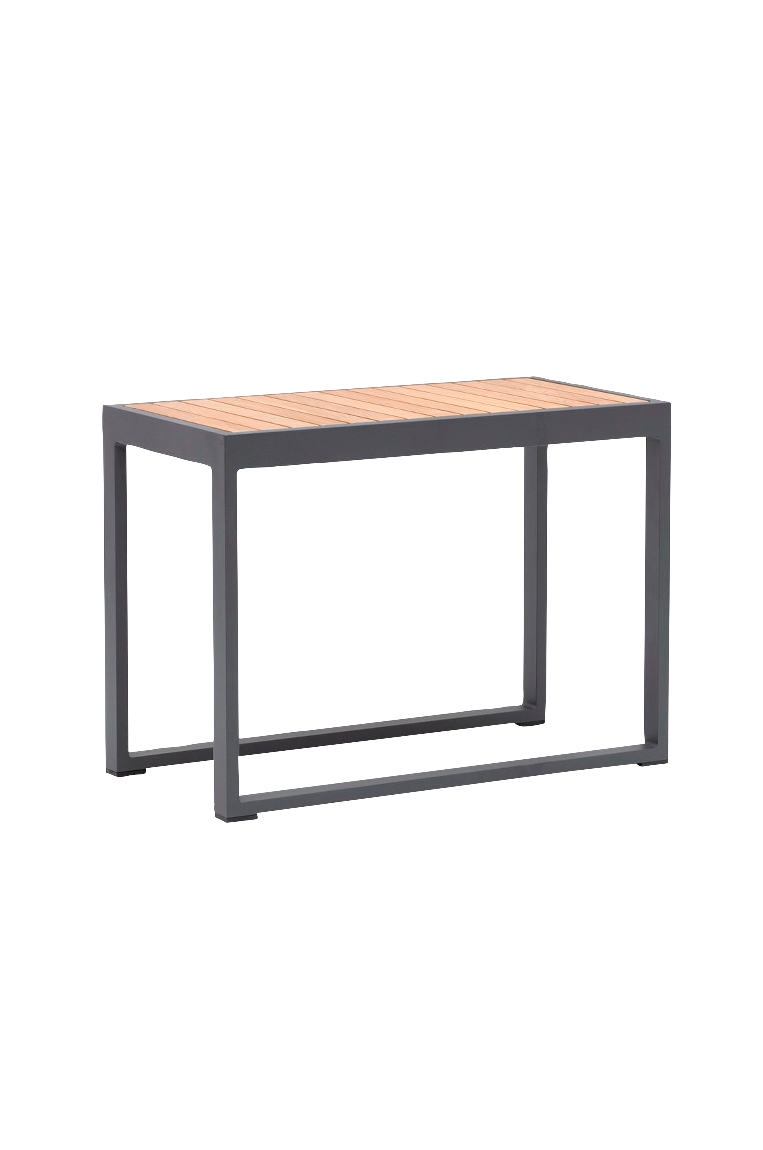 bord i aluminium med bordplade i fsc-certificeret teak.
