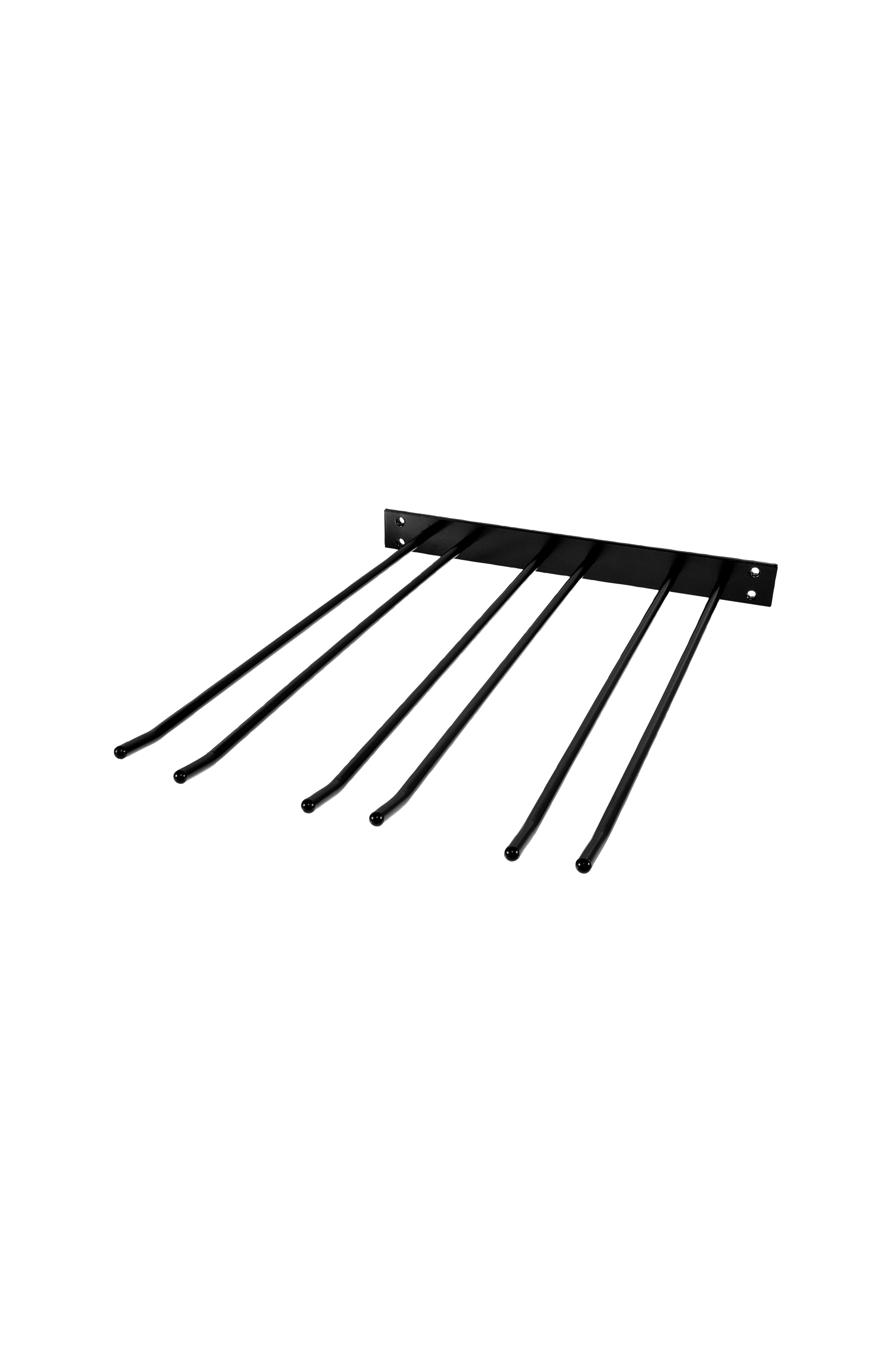 Sort glasophæng med tre rækker og 40 cm dybde til vægmontering, et sort glasophæng med tre rækker og 40 cm dybde, designet til vægmontering. Den kan rumme op til tolv standardglas og giver effektiv opbevaring i ethvert rum.