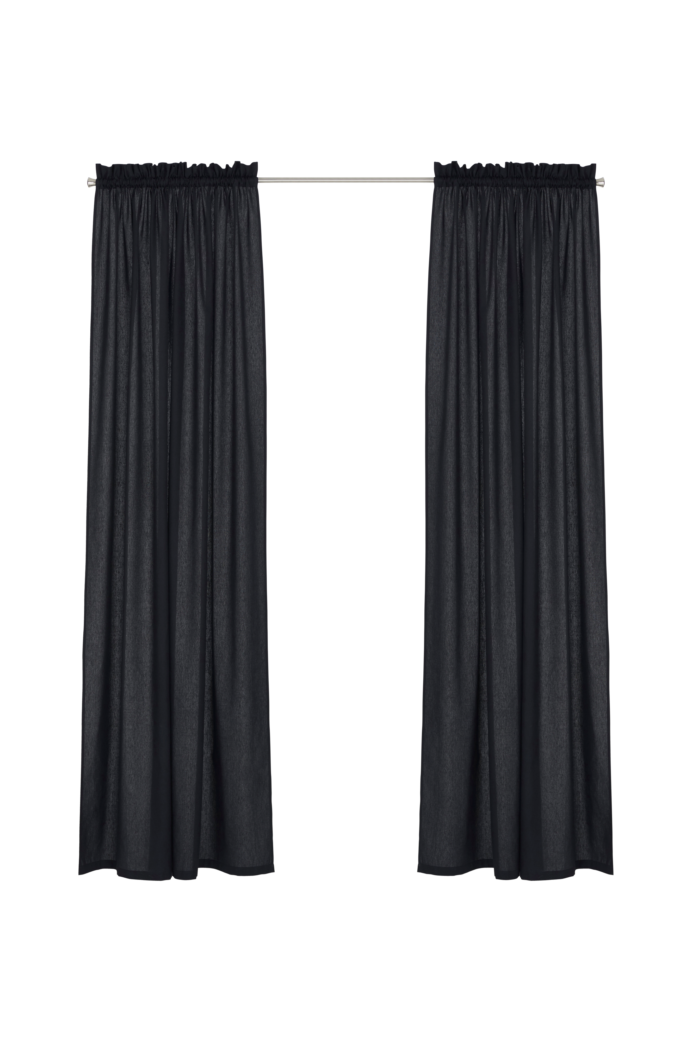 To gardiner af et lidt kraftigere stof i halvpanama af ren bomuld. Syet løbegang foroven. Bredde 145 cm. Tre længder: 160, 220 og 250 cm.