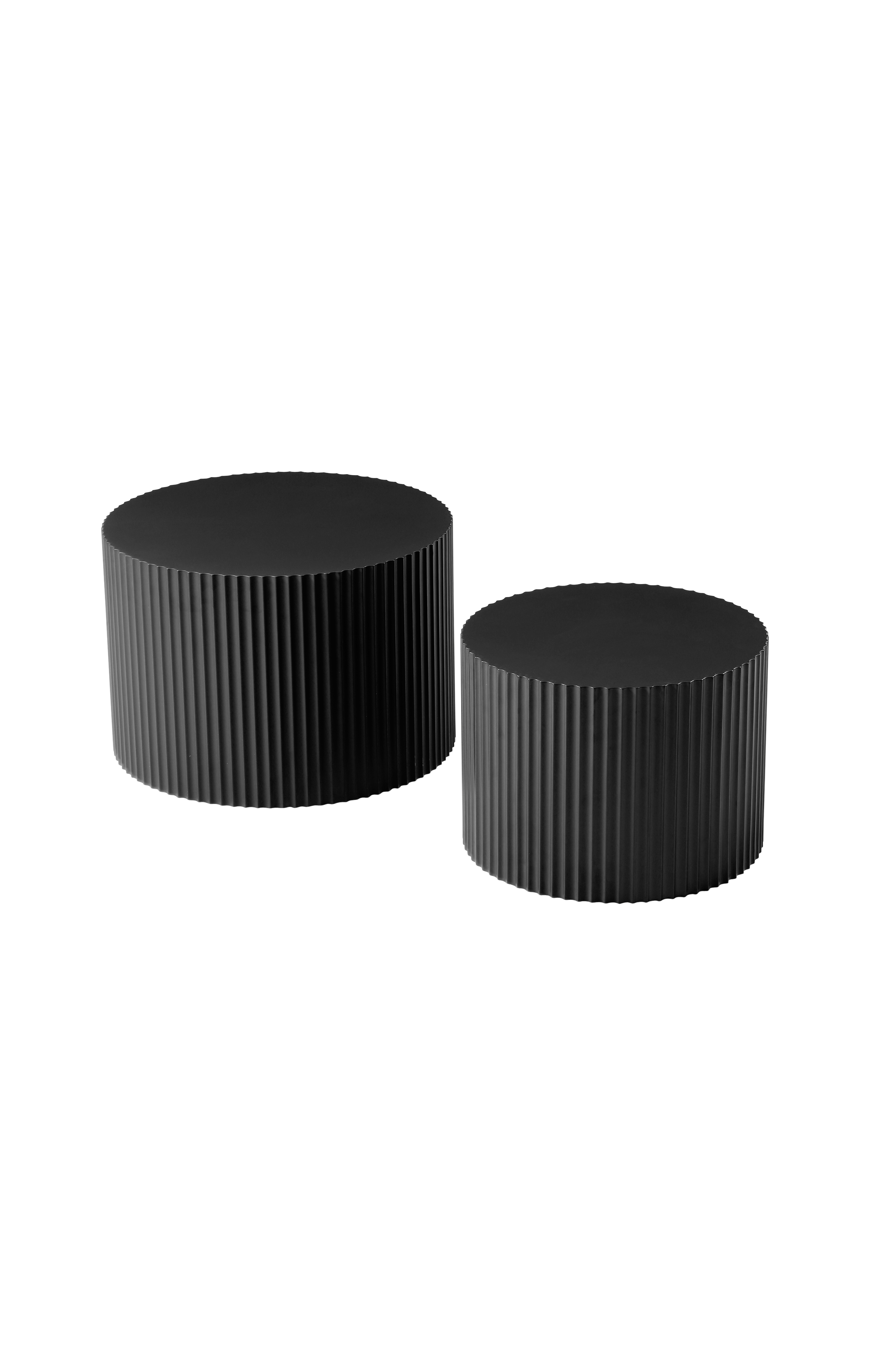 Stilfuldt design og alsidig funktionalitet. Estrid-sofabordssættet kombinerer moderne æstetik med praktisk brug og giver et sofistikeret præg til ethvert opholdsrum. Deres cylindriske form med lodrette ribbede detaljer giver tekstur og en moderne accent.