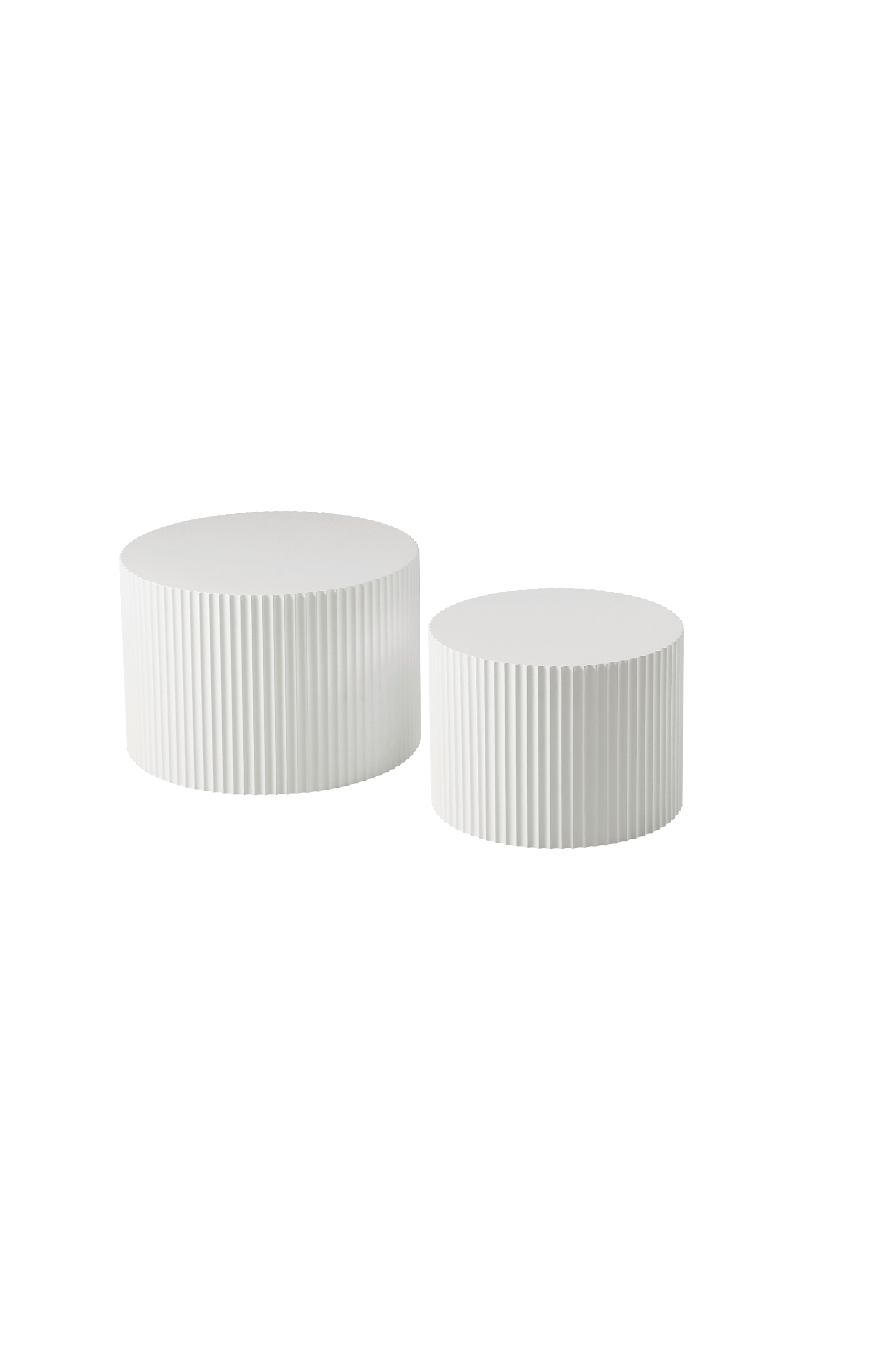 Stilfuldt design og alsidig funktionalitet. Estrid-sofabordssættet kombinerer moderne æstetik med praktisk brug og giver et sofistikeret præg til ethvert opholdsrum. Deres cylindriske form med lodrette ribbede detaljer giver tekstur og en moderne accent.