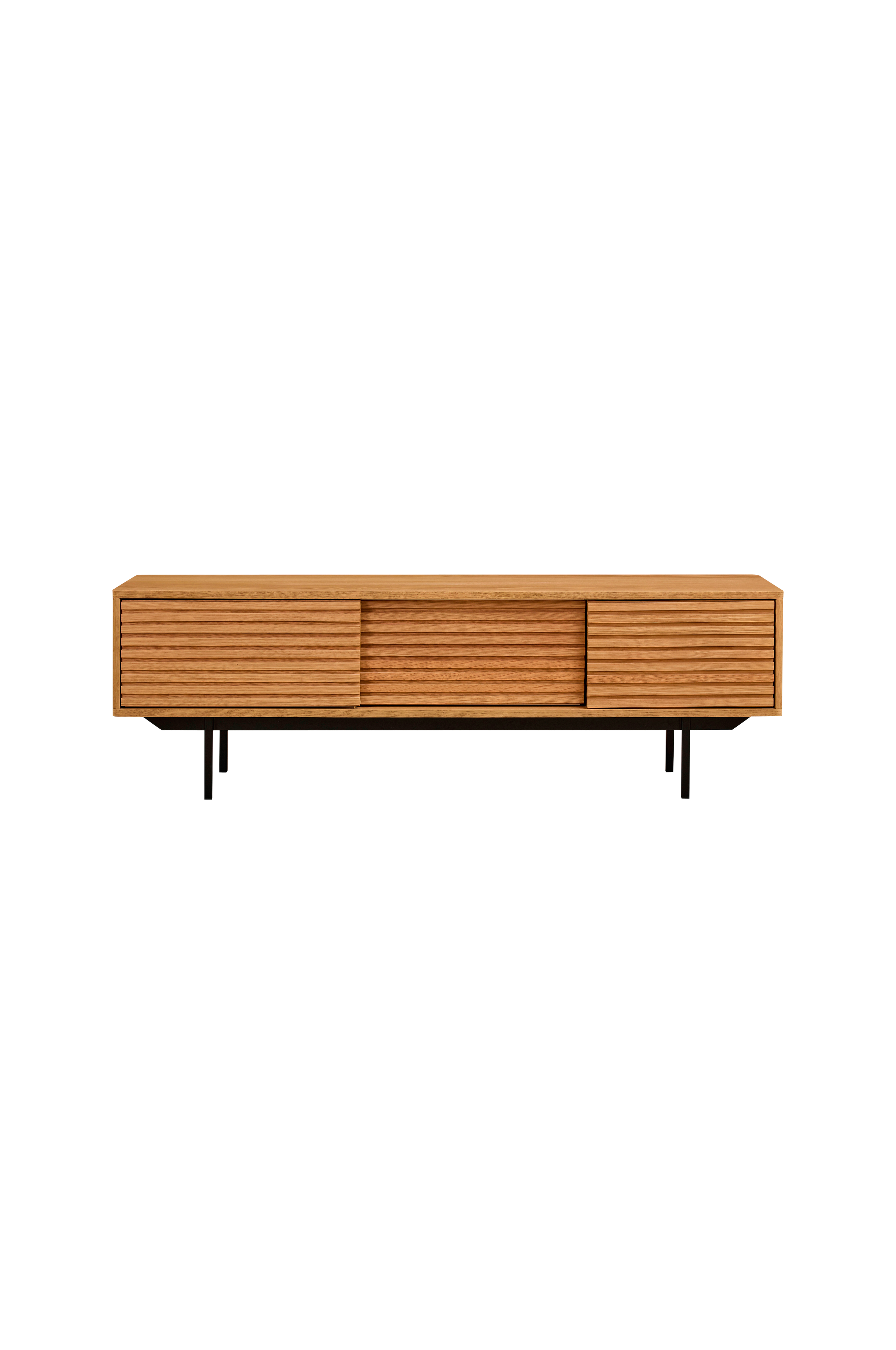 Moderne design og praktisk opbevaring. Hilda tv-bordet kombinerer stil og funktionalitet og giver et strejf af elegance til enhver stue. Dets naturlige trækorn og slanke design skaber en varm, men moderne æstetik.