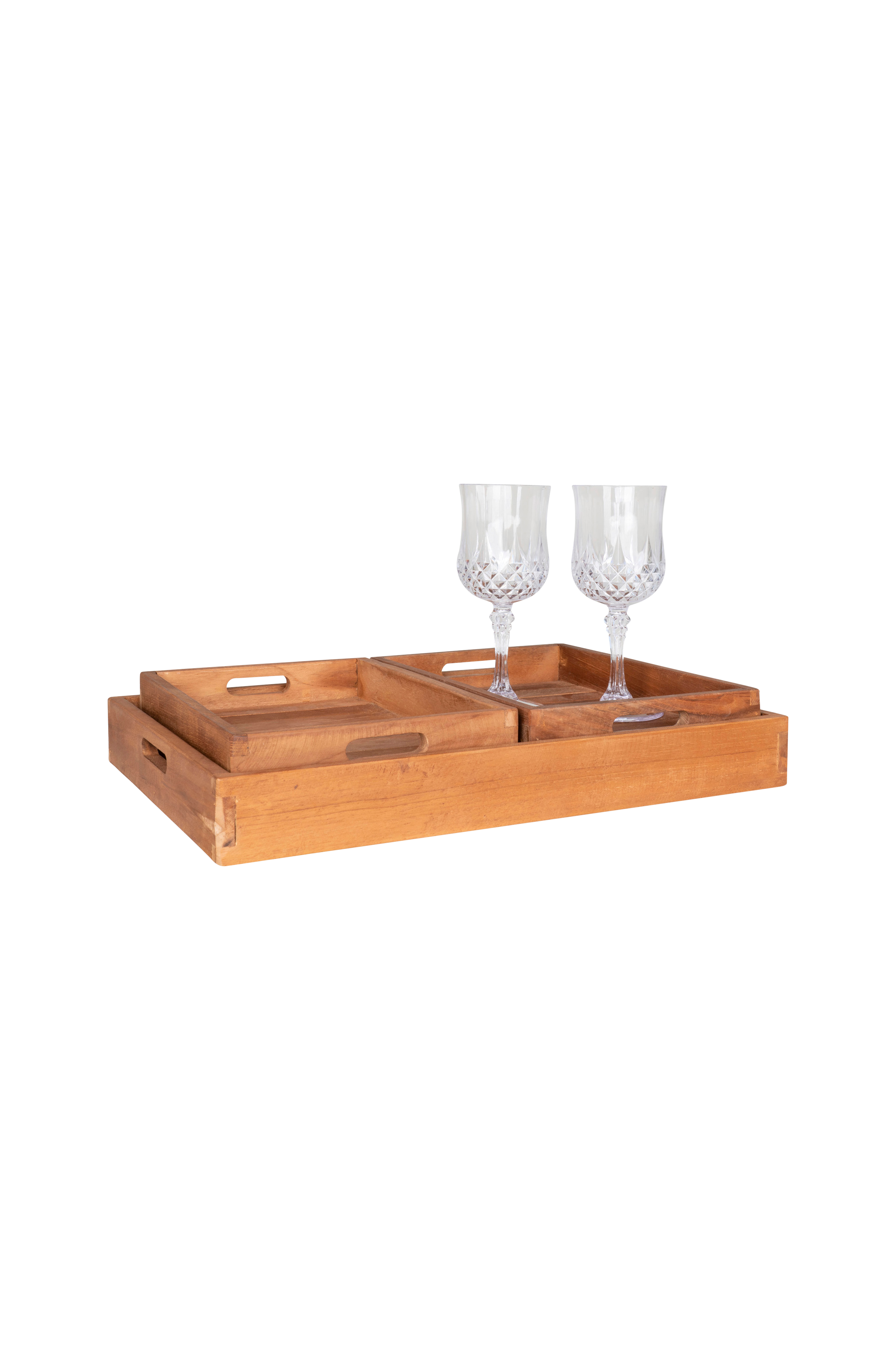 Bakker af teak. Samlet. 26-39x18-29x5. 1,7 kg