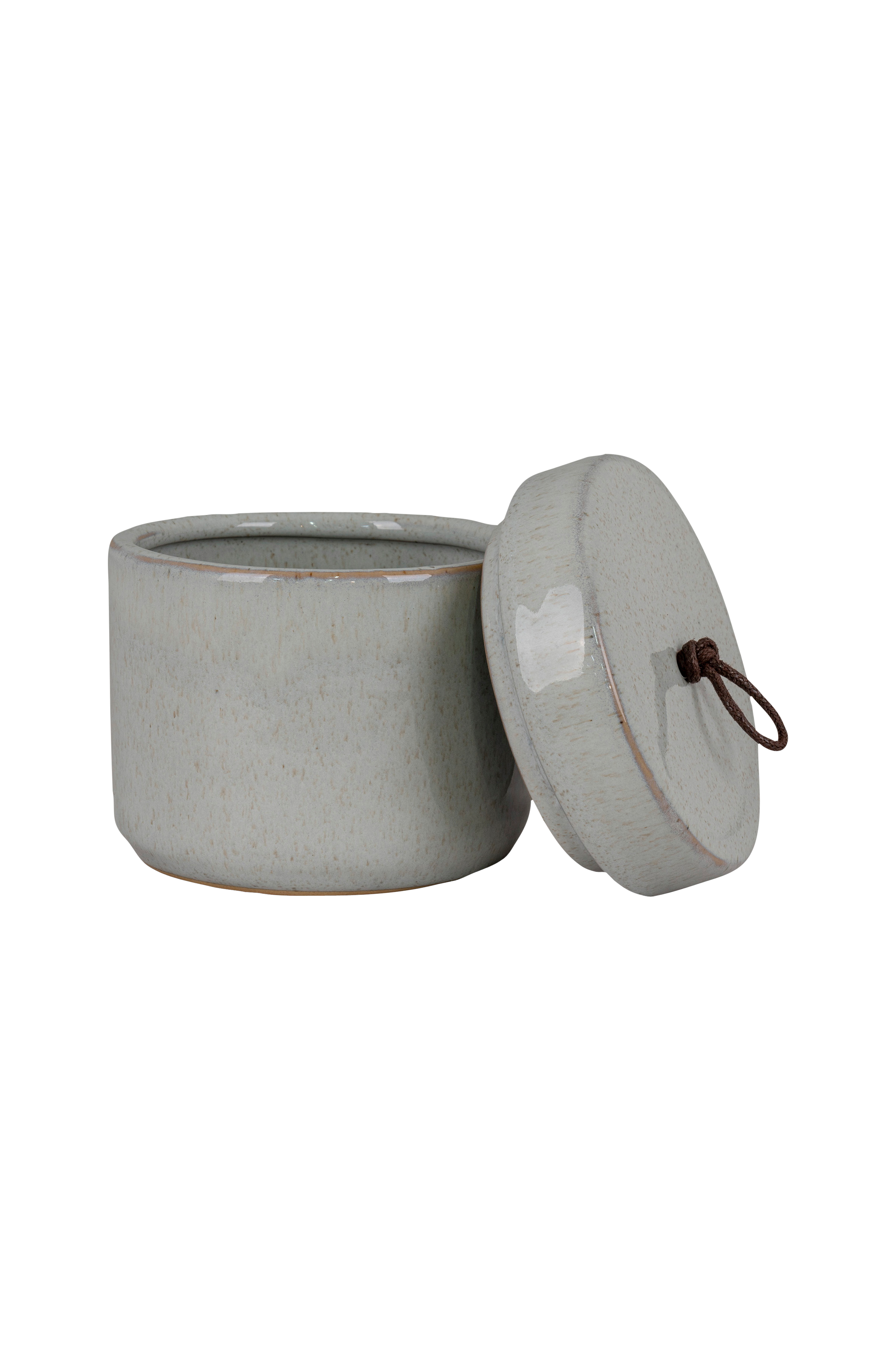 Beholder af keramik, med låg, grå, rund, diameter 10,5x10 cm