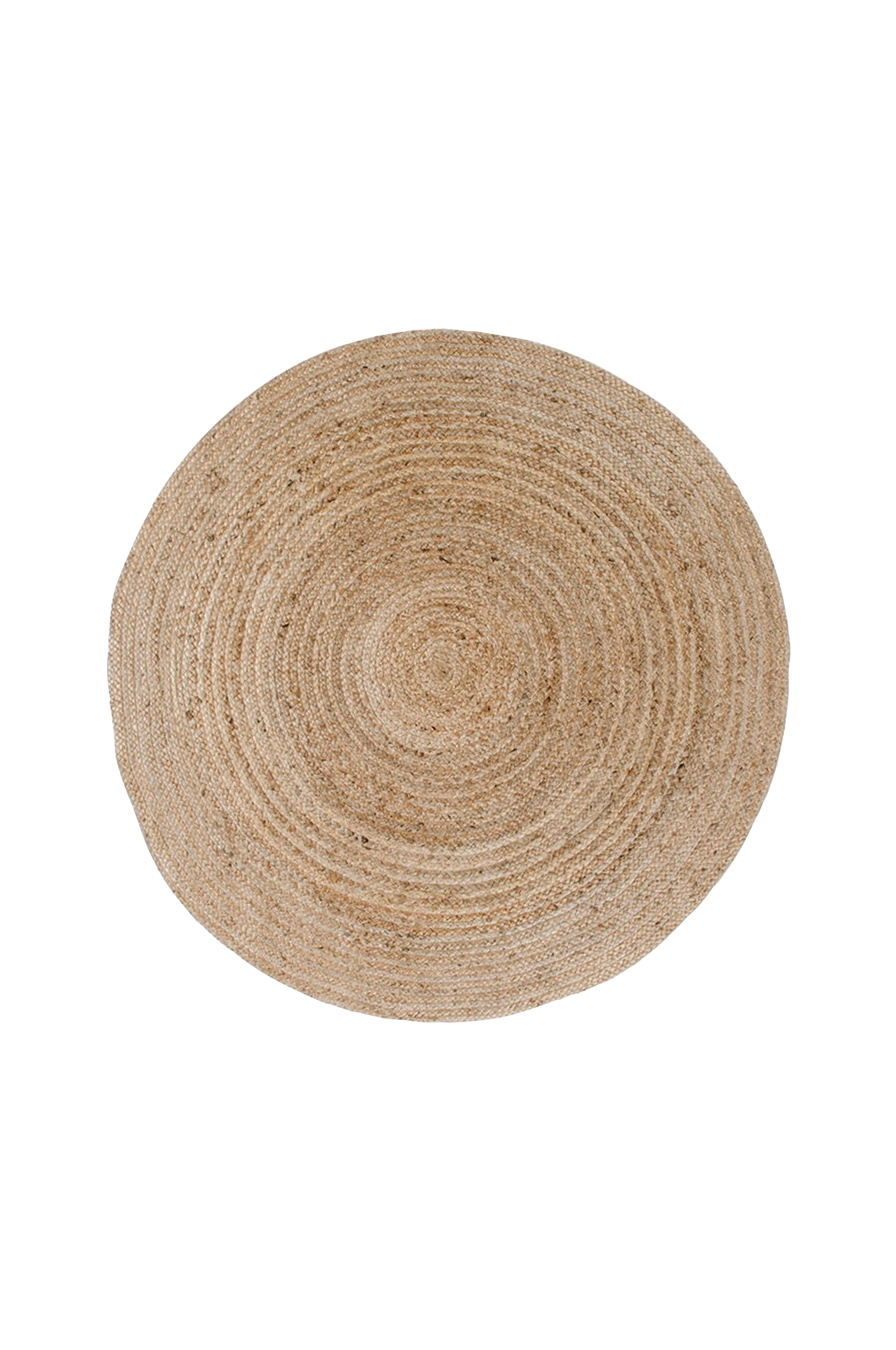 Rundt gulvtæppe i bomuld og jute.