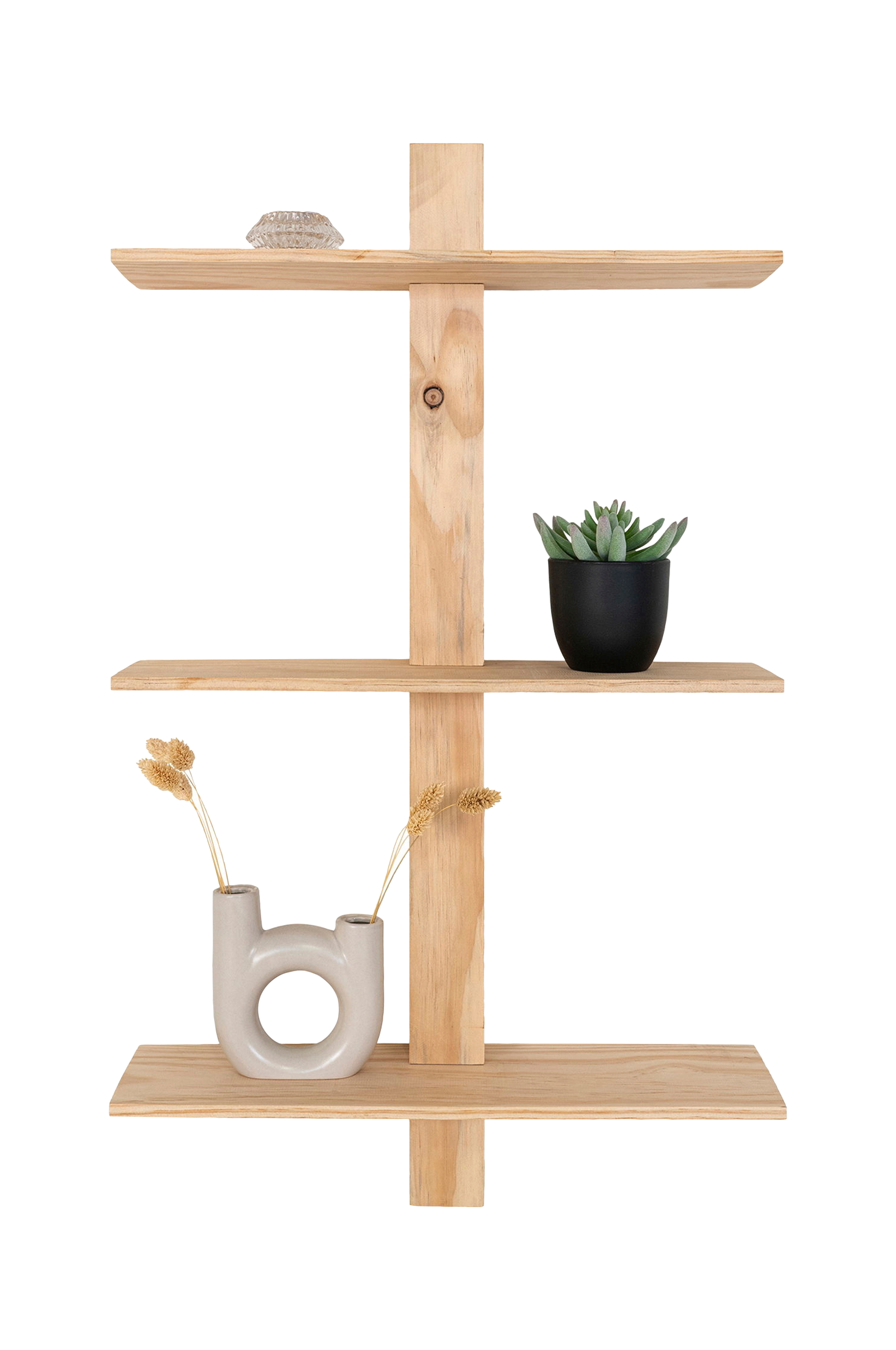Væghylde med 3 hylder af naturfarvet træ 21x55x72 cm