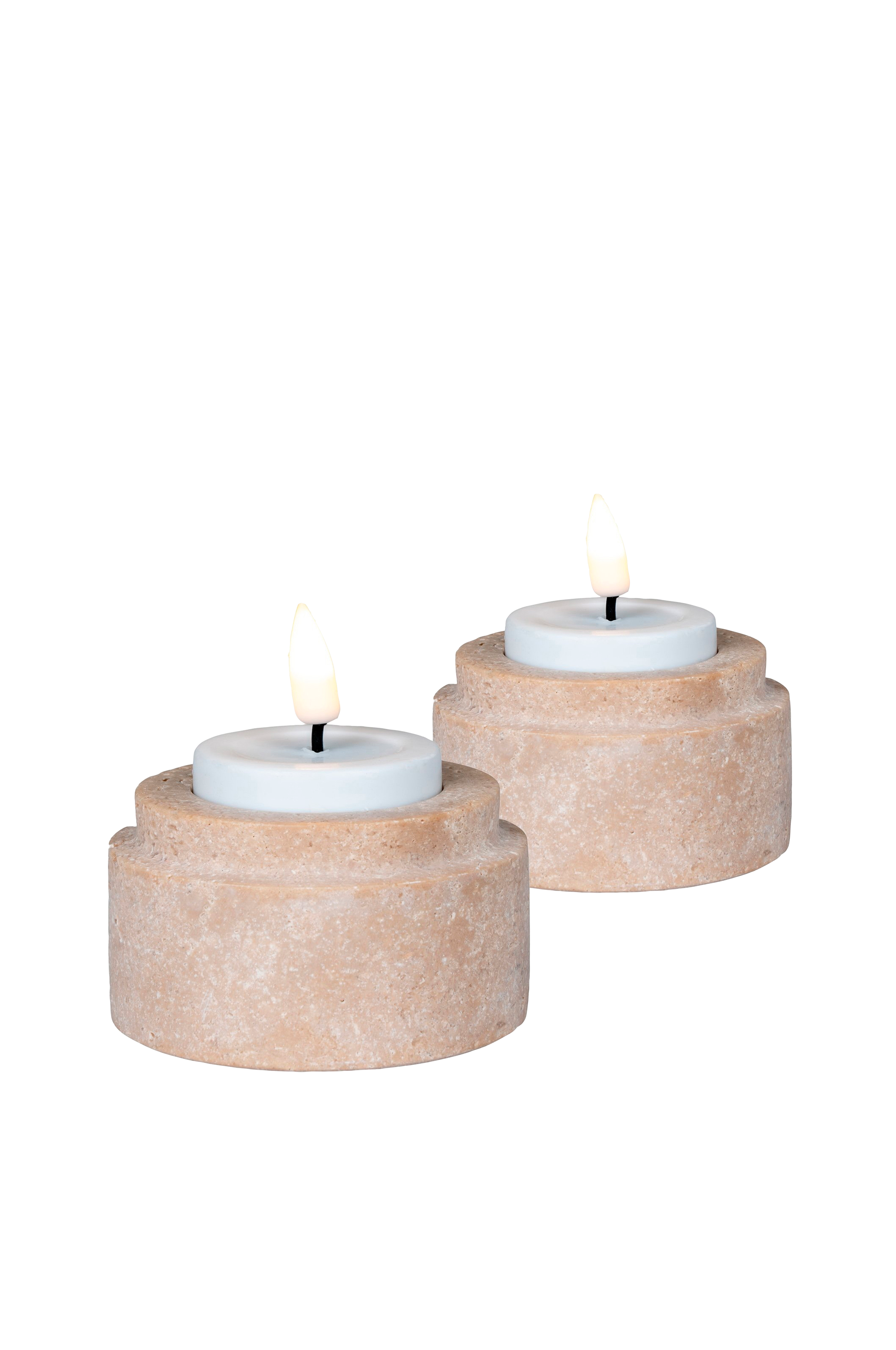 Fyrfadsstage, travertin, natur, sæt med 2 stk.