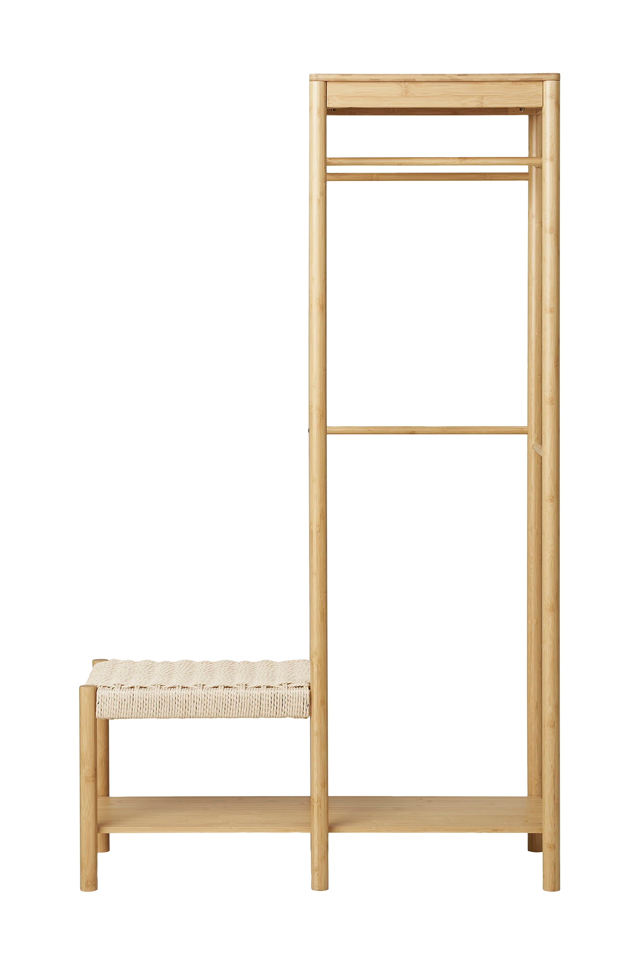 Tøjstativ med naturlig flettet bænk, bambus