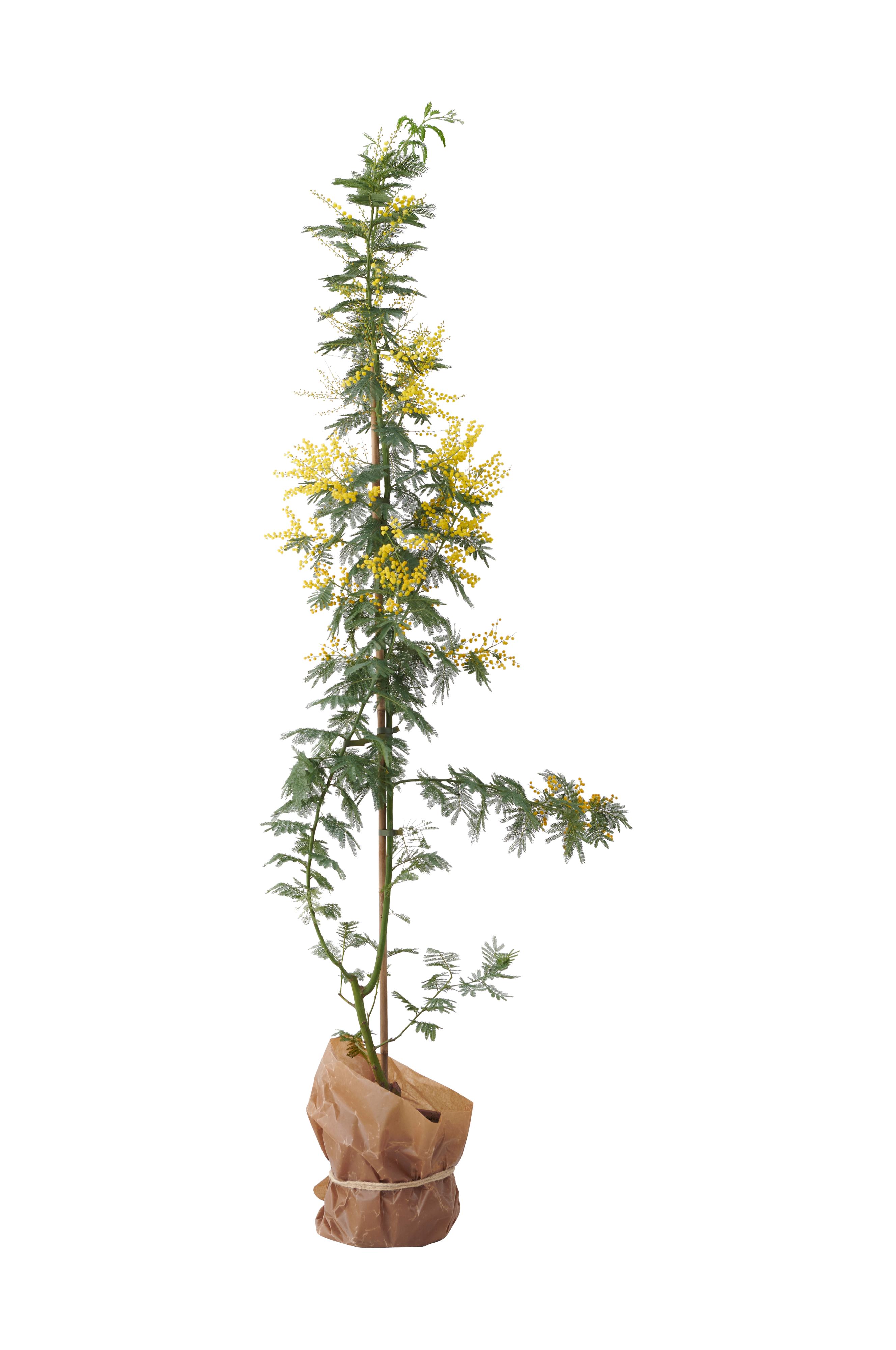 Mimosa anses for at være et de smukkeste træer i verden. I løbet af blomstringsperioden fascinerer træet med en rigdom af smukke gule blomster, der har en meget behagelig duft. Mimosaens blade har en sølvfarvet belægning. En favorit både udendørs eller i havestuen. Træet trives i sol-halvskygge i godt drænet jord, gerne udendørs om sommeren. Krukkestørrelse 19 cm. Højde 120 cm. Duft: Stærk