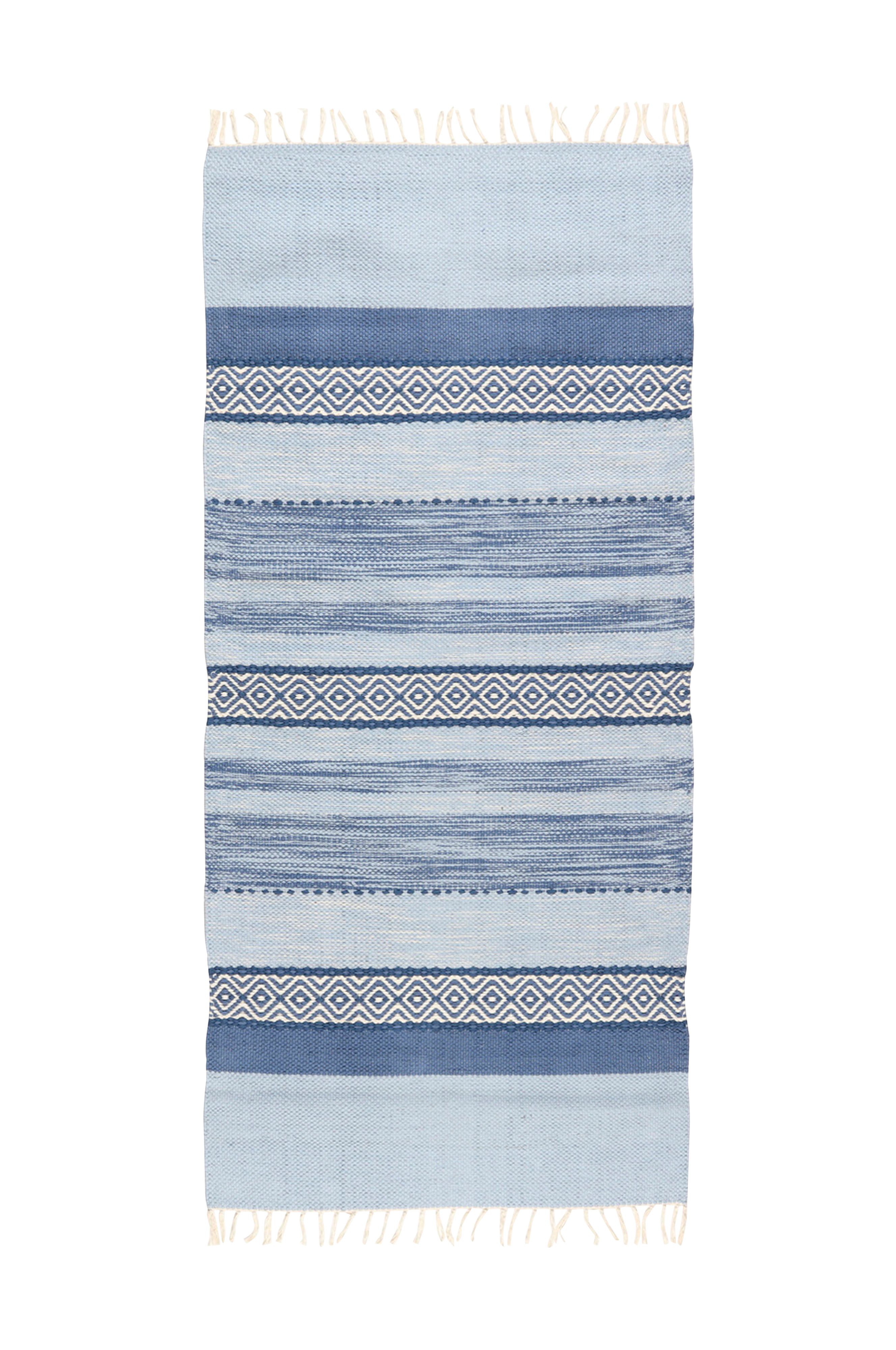 Åby er et stribet garntæppe i fin bomuldskvalitet. Tæppet er vævet i et stribet mønster som minder om de traditionelle kludetæpper. De stribede partier har forskellig bredde, nuance og mønster. Nogle striber er vævet i klassisk gåseøjemønster som giver et moderne twist til tæppets traditionelle udtryk. Tæppet er fremstillet af bomuldsgarn og har frynser i enderne. Bomuld er et smukt naturmateriale som er let at vedligeholde. Tæppet kan vaskes ved 30 grader og kan også vendes, hvilket er praktisk, hvis der skulle opstå en lille plet. Åby er et praktisk og frisk garntæppe, der passer godt ind i f.eks. køkkenet, fritidshuset eller vaskerummet.