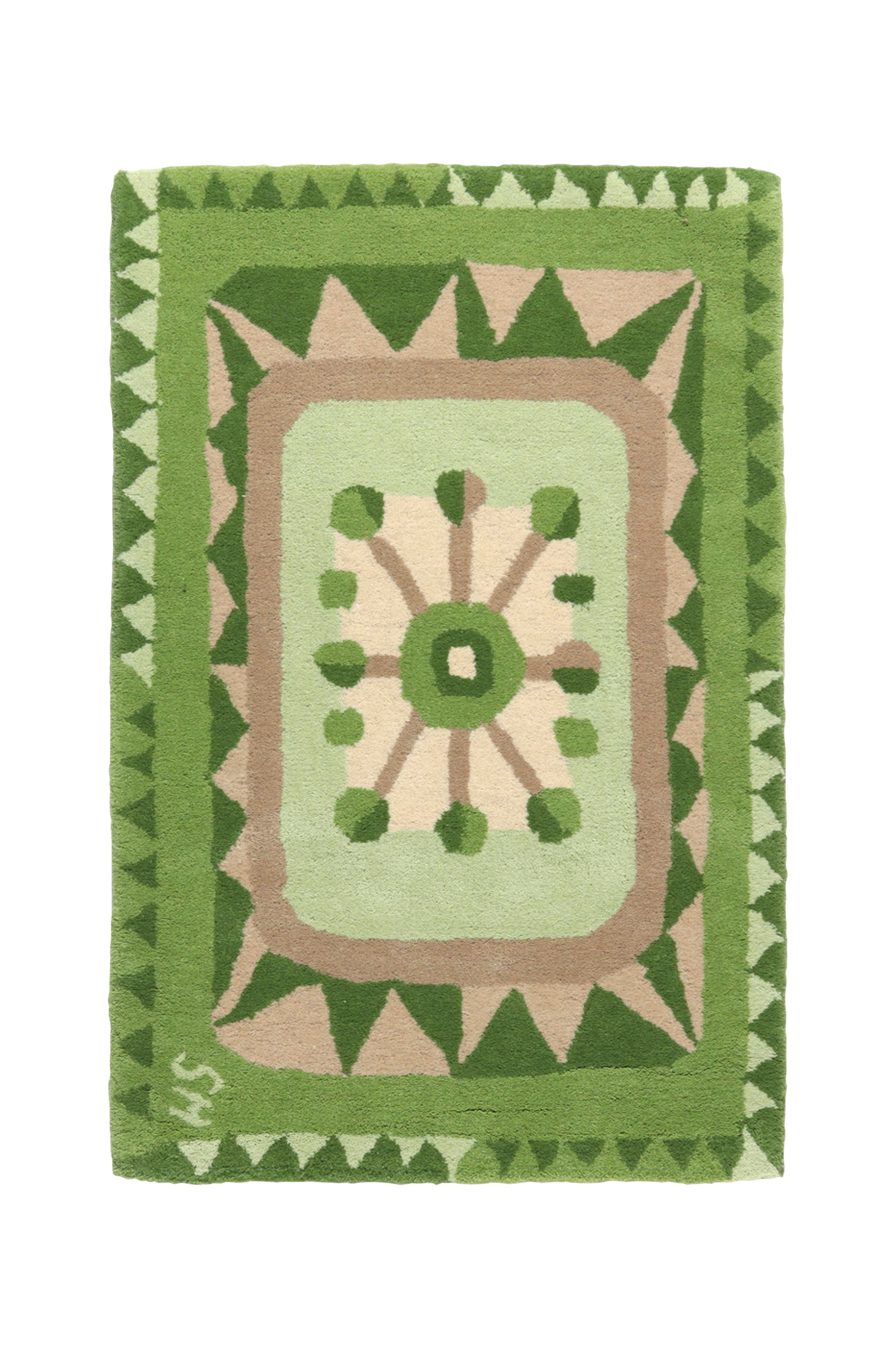 Zigzag er et mønstret uldtæppe designet af designeren stina hagström. Tæppet er håndtuftet og har en tyk og tæt luv af uld med en bomuldsbagside for ekstra stabilitet. Mønsteret er levende med zigzag, linjer og runde former.