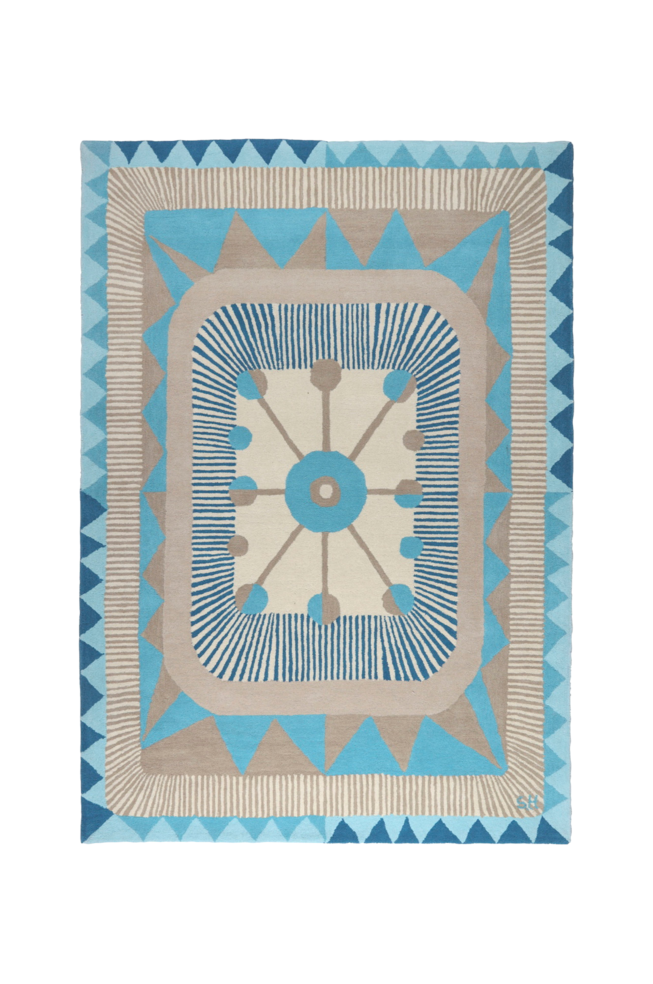 Zigzag er et mønstret uldtæppe designet af designeren stina hagström. Tæppet er håndtuftet og har en tyk og tæt luv af uld med en bomuldsbagside for ekstra stabilitet. Mønsteret er levende med zigzag, linjer og runde former.