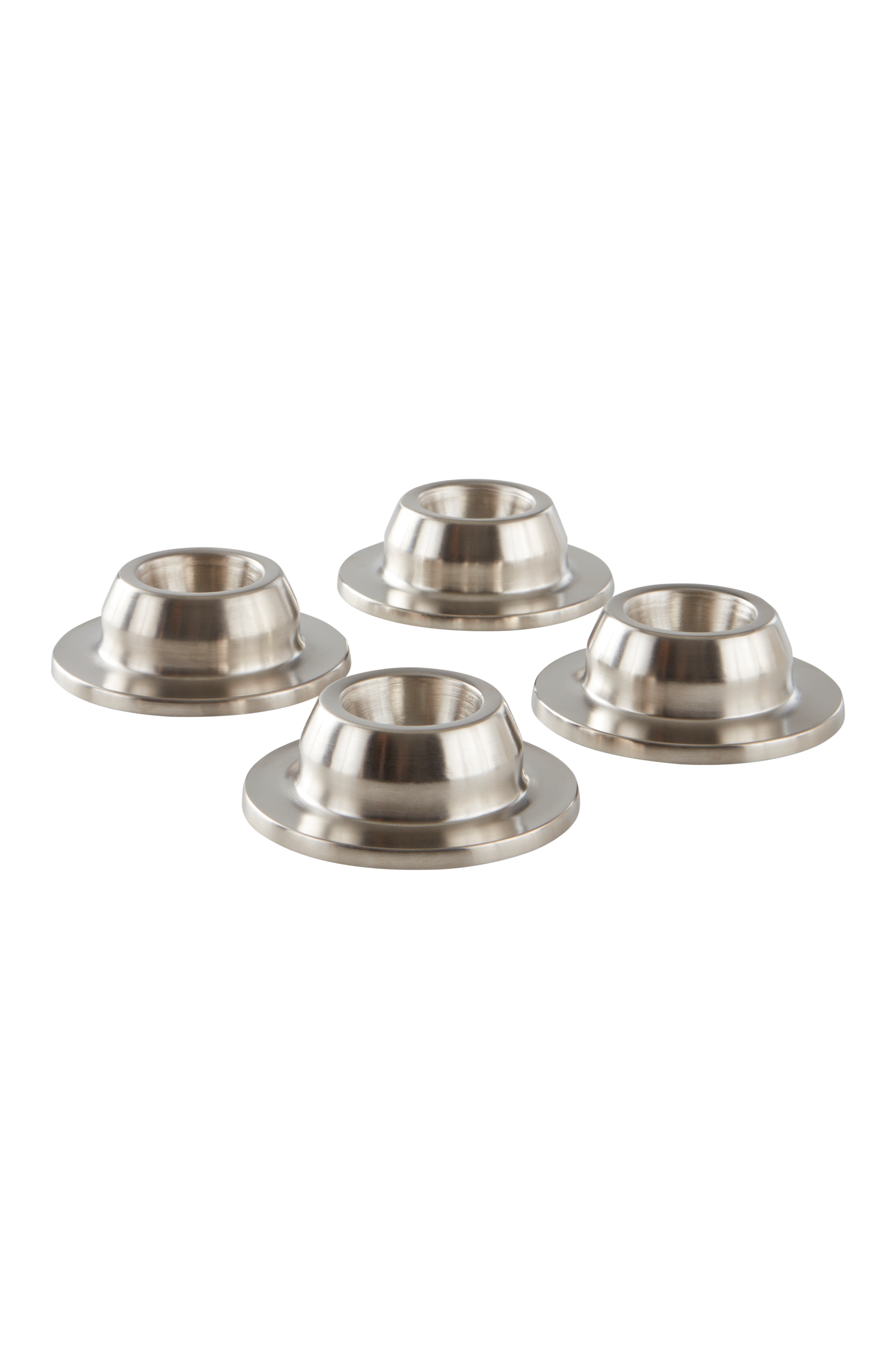 4-pak æggebægre af jern og nikkel. Æggebægrene er enkle i formen og passer til de fleste typer opdækning, da de har et stilrent, klassisk design. De står meget stabilt på bordet.
