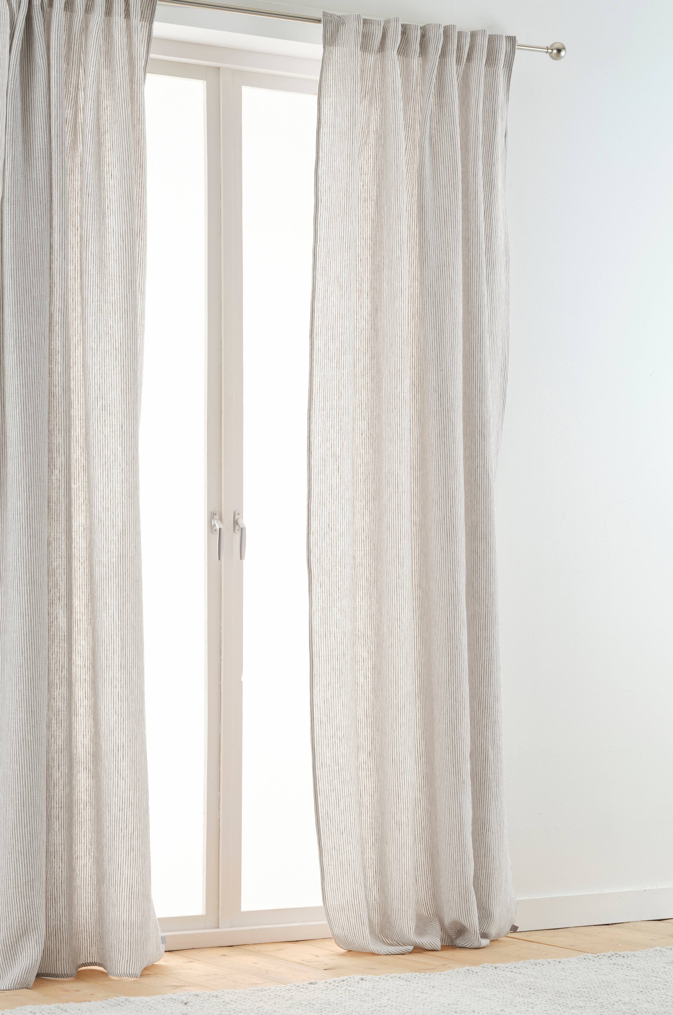 Gardinens længde kan variere en smule ved levering, da naturmaterialer som hør påvirkes mere af temperaturen end syntetiske materialer. En variation på 1-2 cm fra de angivne mål er helt naturlig.