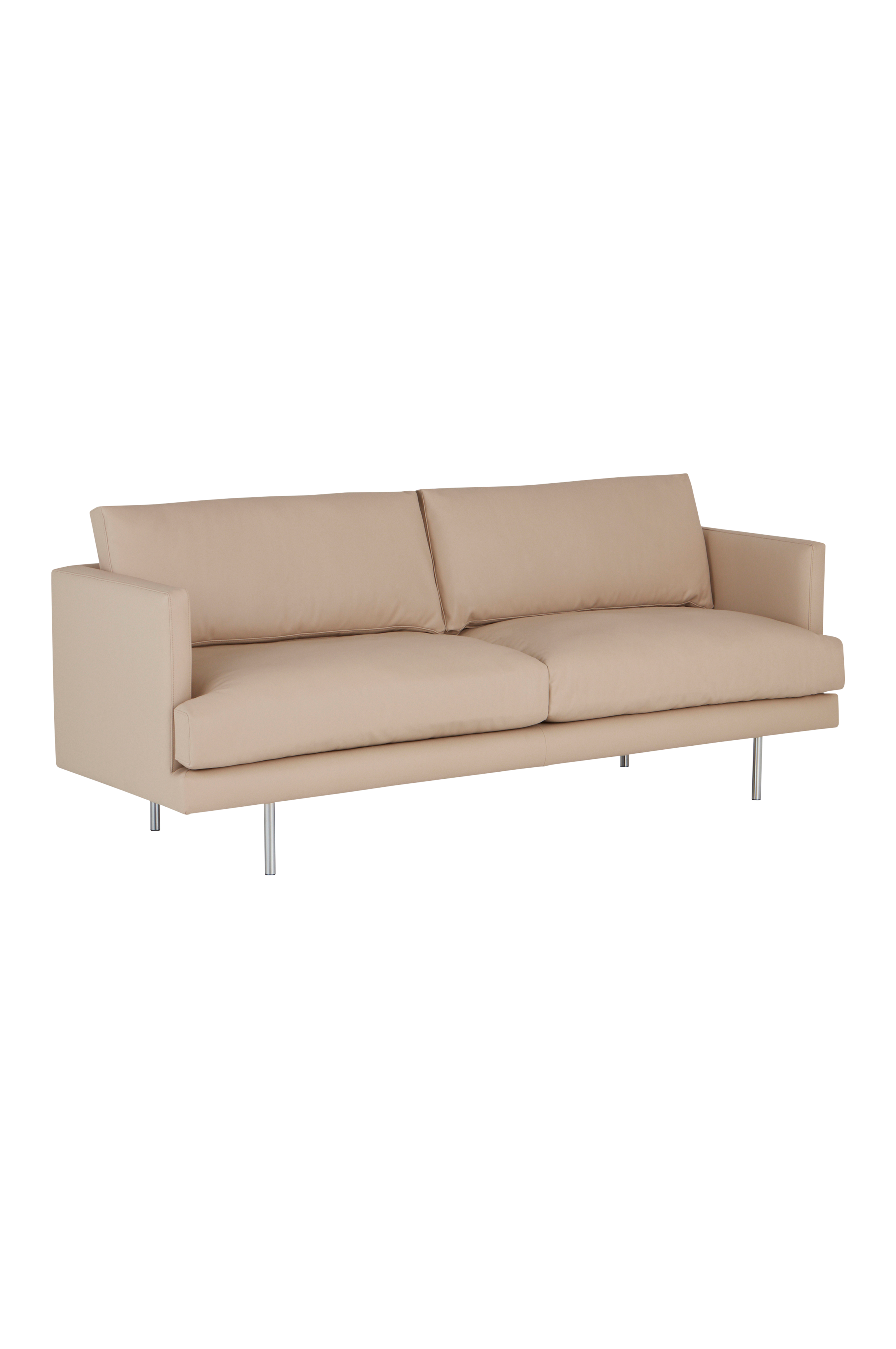 3-pers. sofa med flot betræk i vegansk kunstlæder matchet med forkromede, lige ben. Vegansk læder er et flot og slidstærkt alternativ fremstillet af polyester og polyuretan. ANTWERPEN er en elegant sofa, hvor moderne design møder 50'er-nostalgi. Den et tidløst udtryk, som gør den let at placere. Sofaen har et stabilt skelet af fyrretræ og plywood med god siddekomfort takket være den fantastiske opbygning af koldskum, zigzag-affjedring, elastikbånd og den skønne polstring af fjer og kuglefibre. Rygpuderne har polstring af fjer og kuglefibre, som gør dem behagelige at læne sig op ad.
