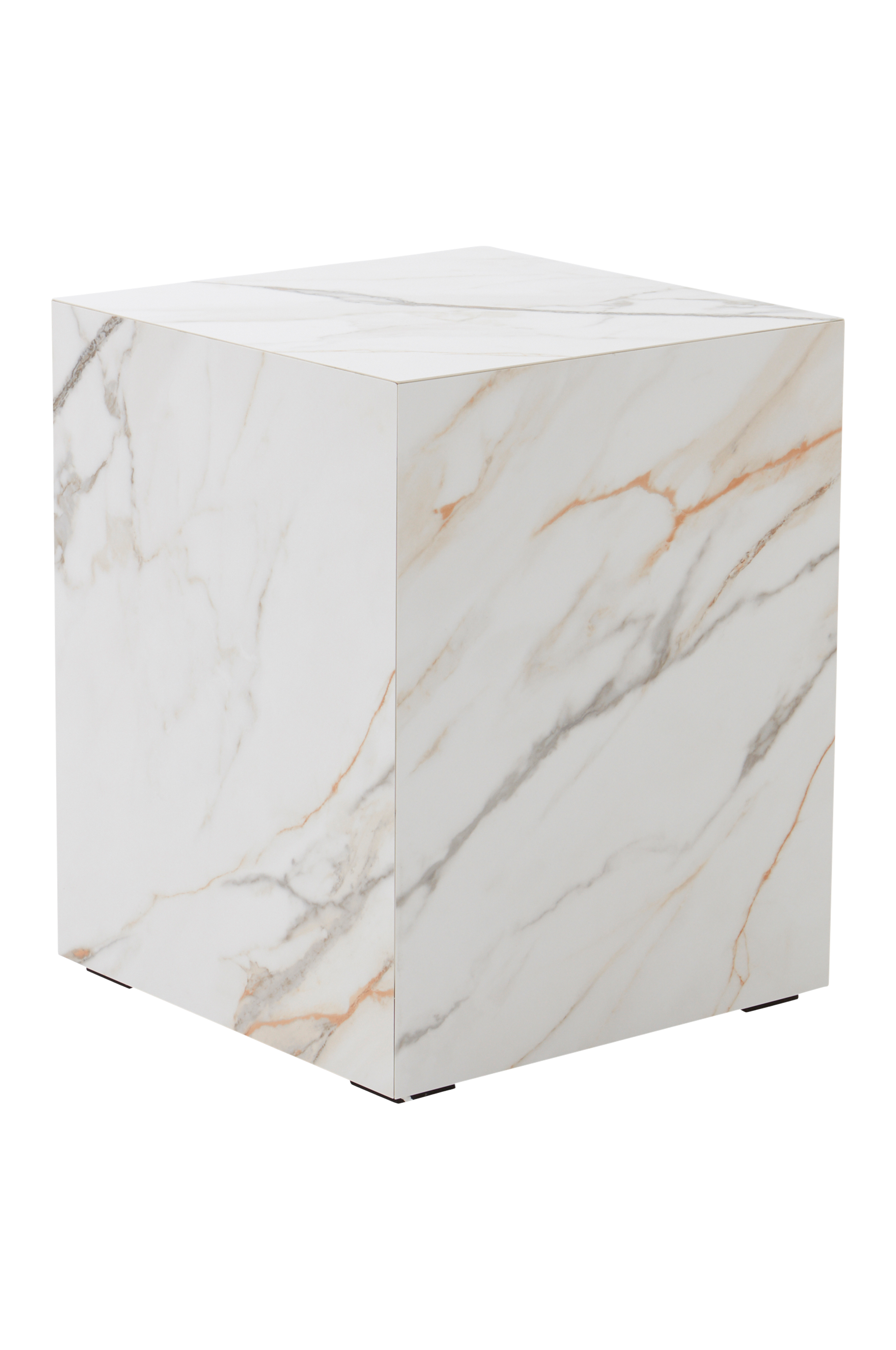 Kvadratisk sidebord af FSC-certificeret MDF som er beklædt med naturtro marmorimitation. Det flotte bord har mange fordele i forhold til ægte marmor. Det er mere holdbart end marmor, vægten er håndterlig og prisen kan ikke sammenlignes. Sofabordet har små dupper nedenunder, som giver en lille luftspalte mellem bordet og gulvet, så bordet får et svævende look. Med ANZIO får du et lyst, friskt sofabord, som er både flot og praktisk.