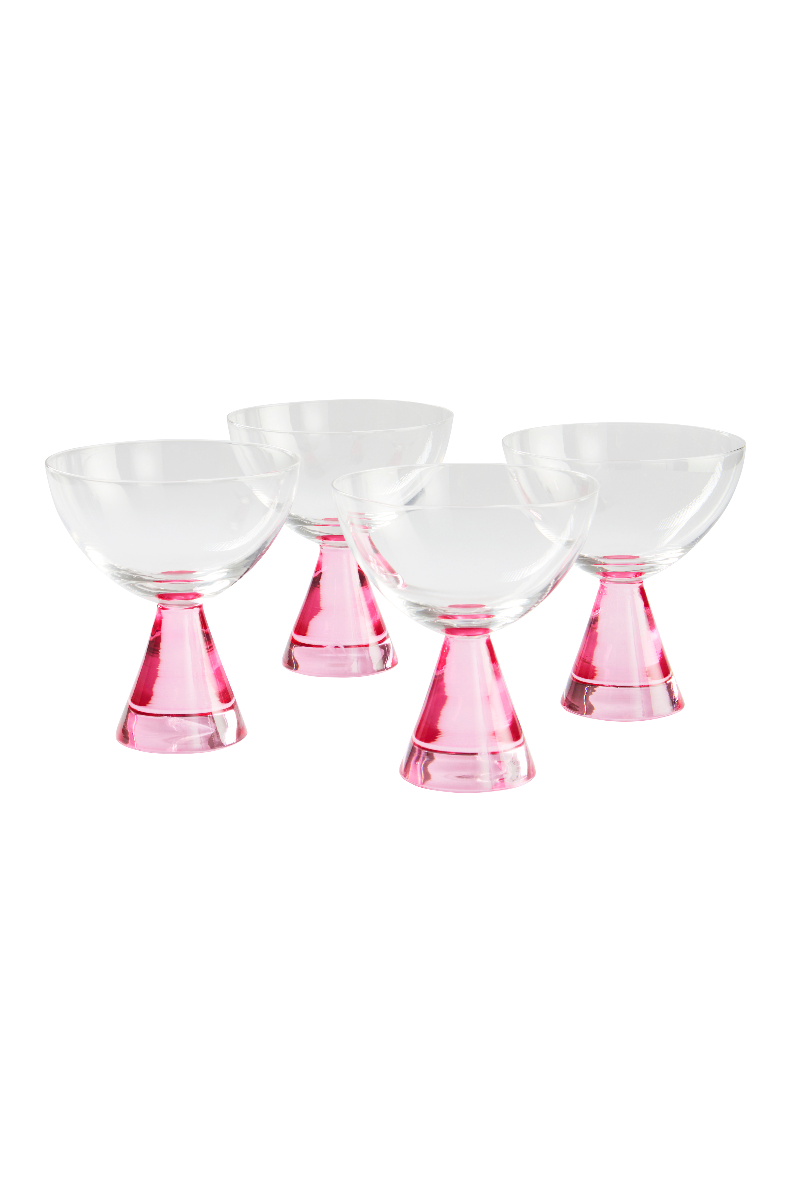 4-pak cocktailglas på fod. Det lækre glas AYLA kommer i to sommerlige farvekombinationer og formen er tiltalende. Både boblende drinks og cocktails smager forfriskende godt i et glas som dette, og borddækningen får et skønt look. Til sommerens garden party er AYLA et must.