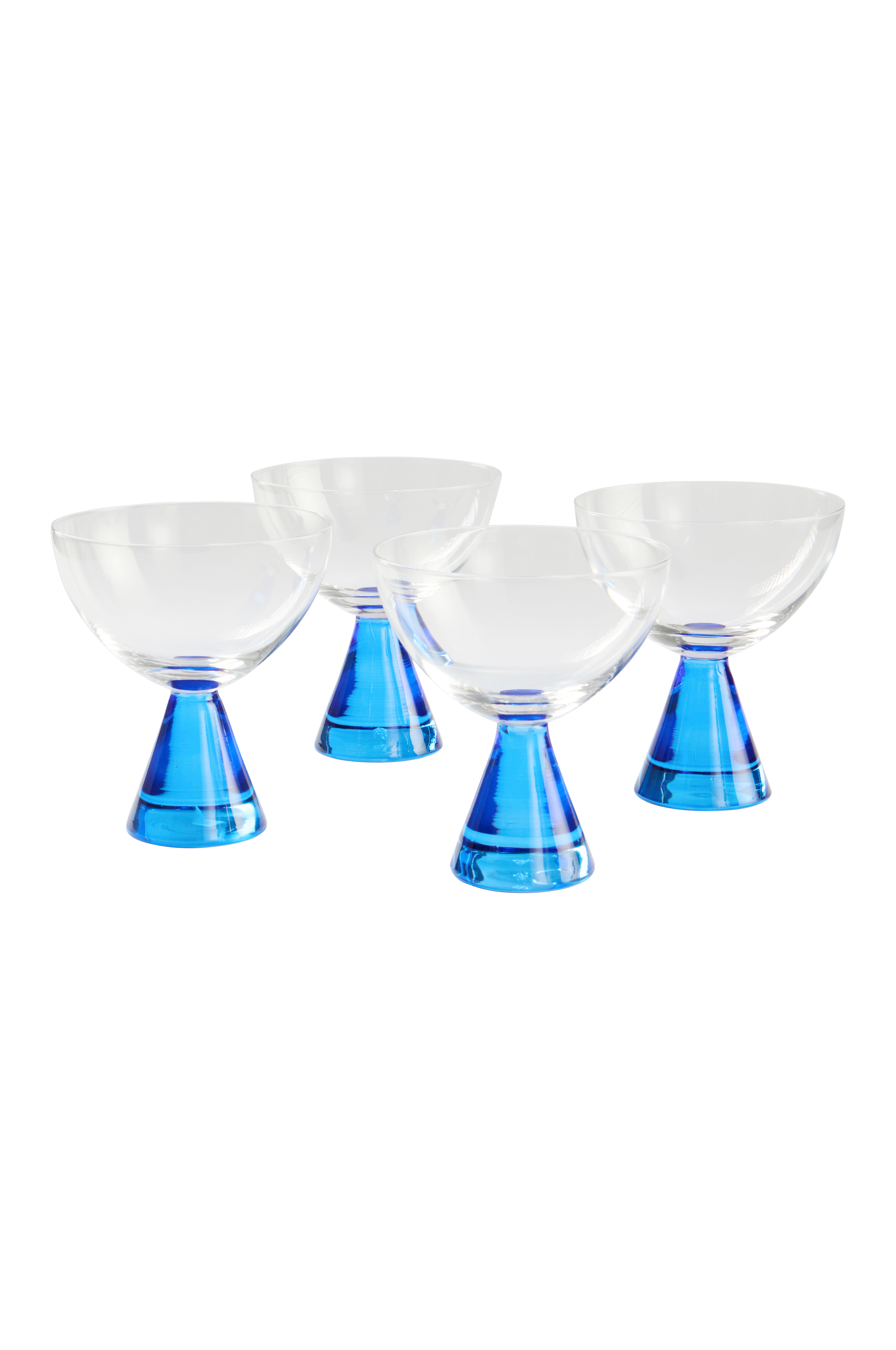 4-pak cocktailglas på fod. Det lækre glas AYLA kommer i to sommerlige farvekombinationer og formen er tiltalende. Både boblende drinks og cocktails smager forfriskende godt i et glas som dette, og borddækningen får et skønt look. Til sommerens garden party er AYLA et must.