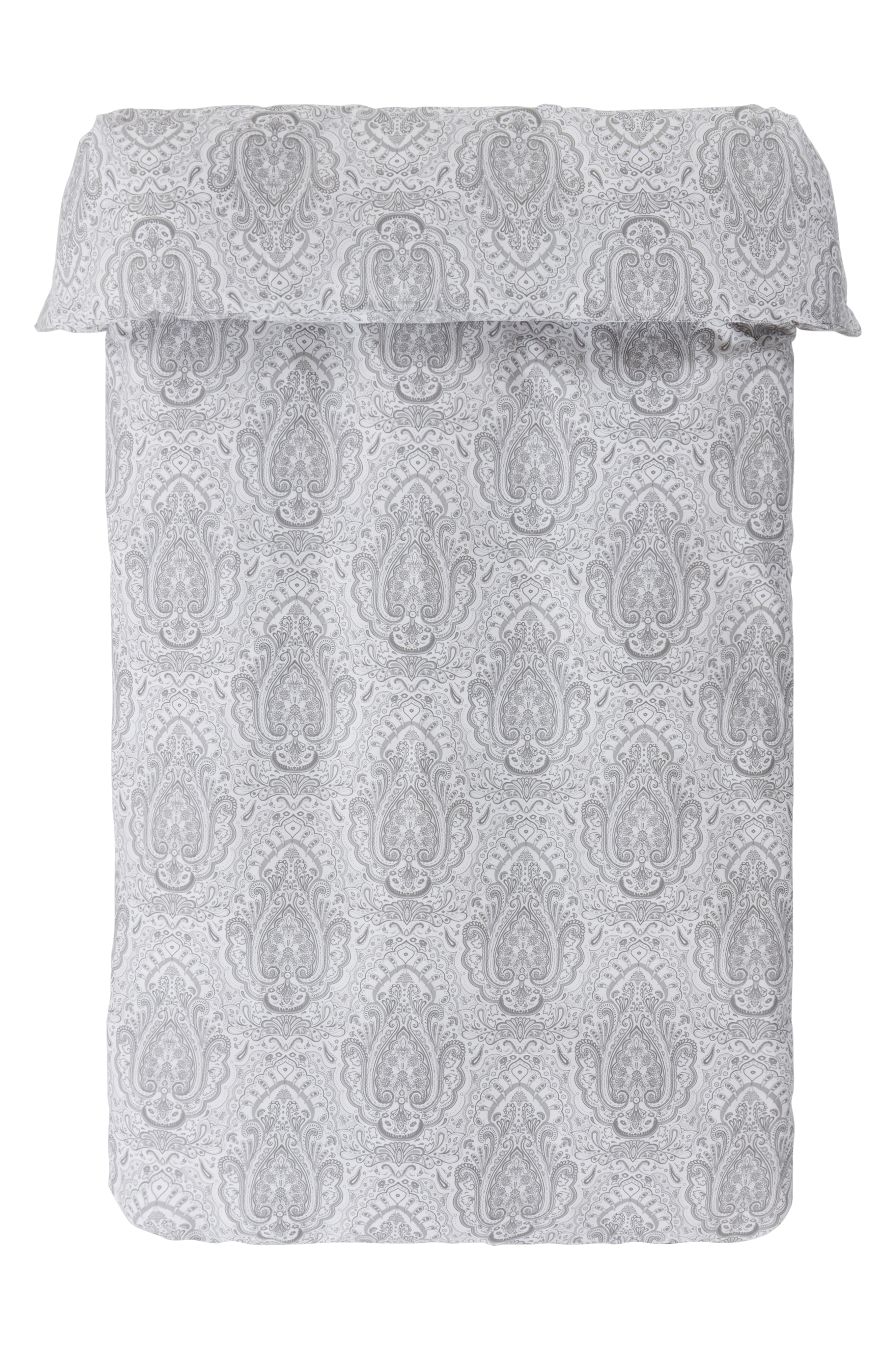 Dynebetræk i blød satin med et klassisk paisleymønster trykt på begge sider. Satin er et tæt, glat stof med en skinnende glans, der giver en følelse af luksus.