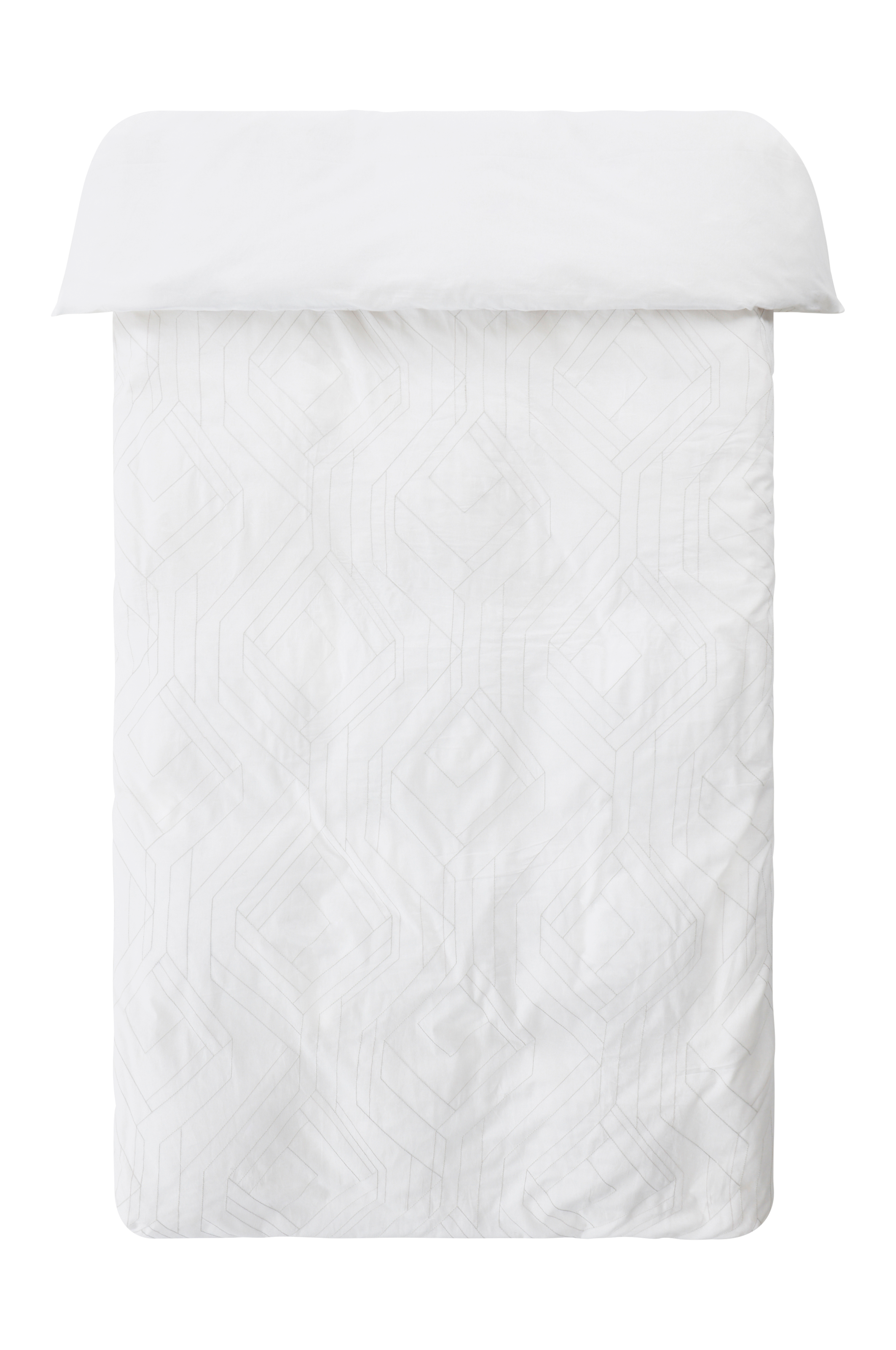Dynebetræk i behagelig bomuld. Dynebetrækket har broderet mønster med tynd tråd i nærliggende farve, som giver et fint, diskret mønster. Bagsiden er ensfarvet i samme stof som forsiden. Bomuld er behageligt at sove i, opleves svalt og blødt mod huden. Åbning i de øverste hjørner på dynebetrækket, så det er nemt at trække dynebetrækket over dynen. Lukkes med lynlås. Trådtæthed på 144 tc. (Trådtætheden angiver antal tråde, Thread Count, pr. kvadrattomme i et stof. Jo højere trådtæthed desto højere kvalitet.)