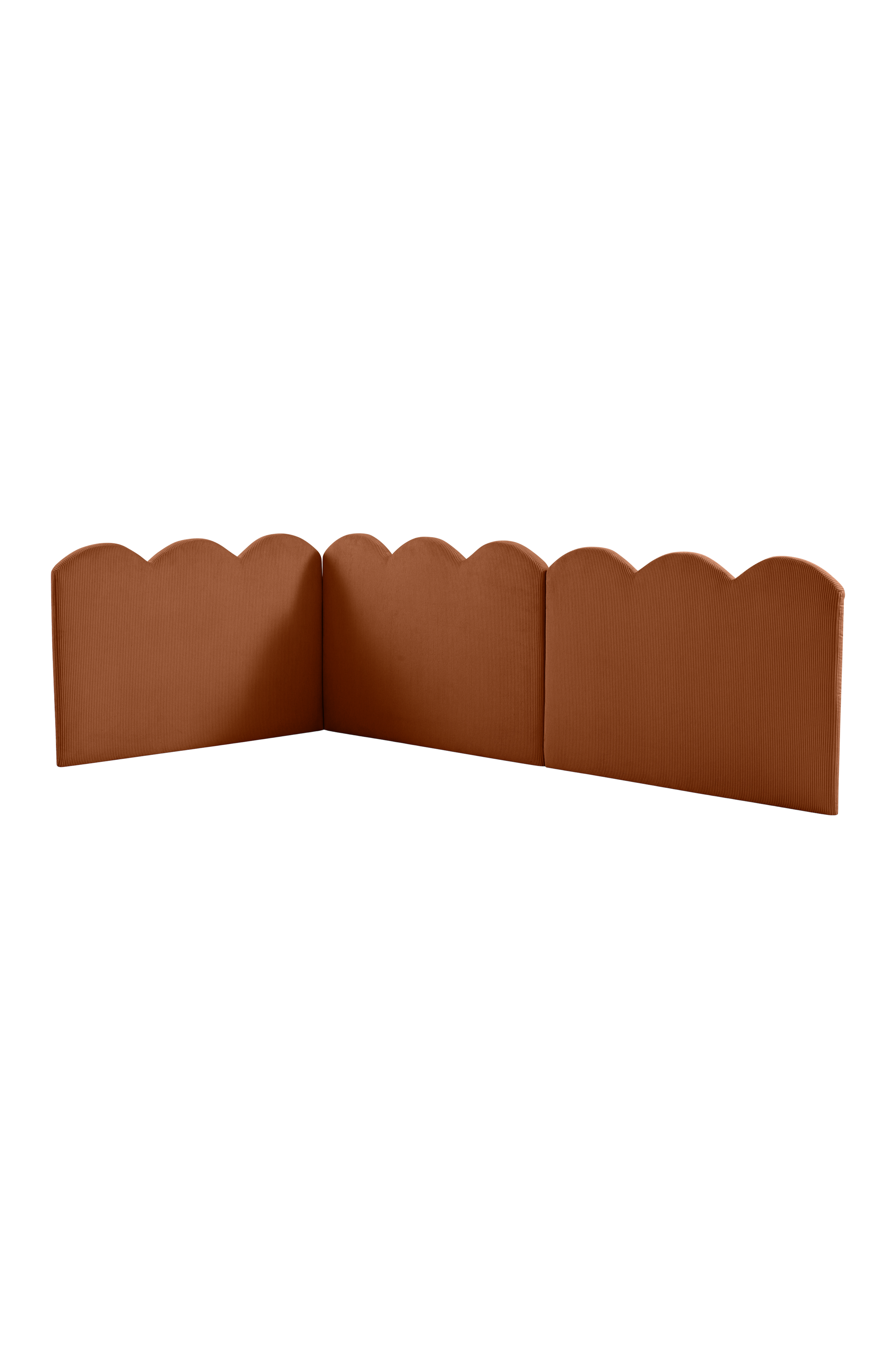 Hovedgærdesættet BURLEY har et stilfuldt design med tre dele, der skaber et hyggeligt sengehjørne. Placer et stykke bag hovedgærdet og to langs væggen for at få et indrammet look. BURLEY beskytter væggene mod pletter og forbedrer sengens komfort. Legende formede ender og blød polstring giver et charmerende touch. Et brugervenligt vægbeslag på bagsiden sikrer ubesværet placering mellem seng og væg.