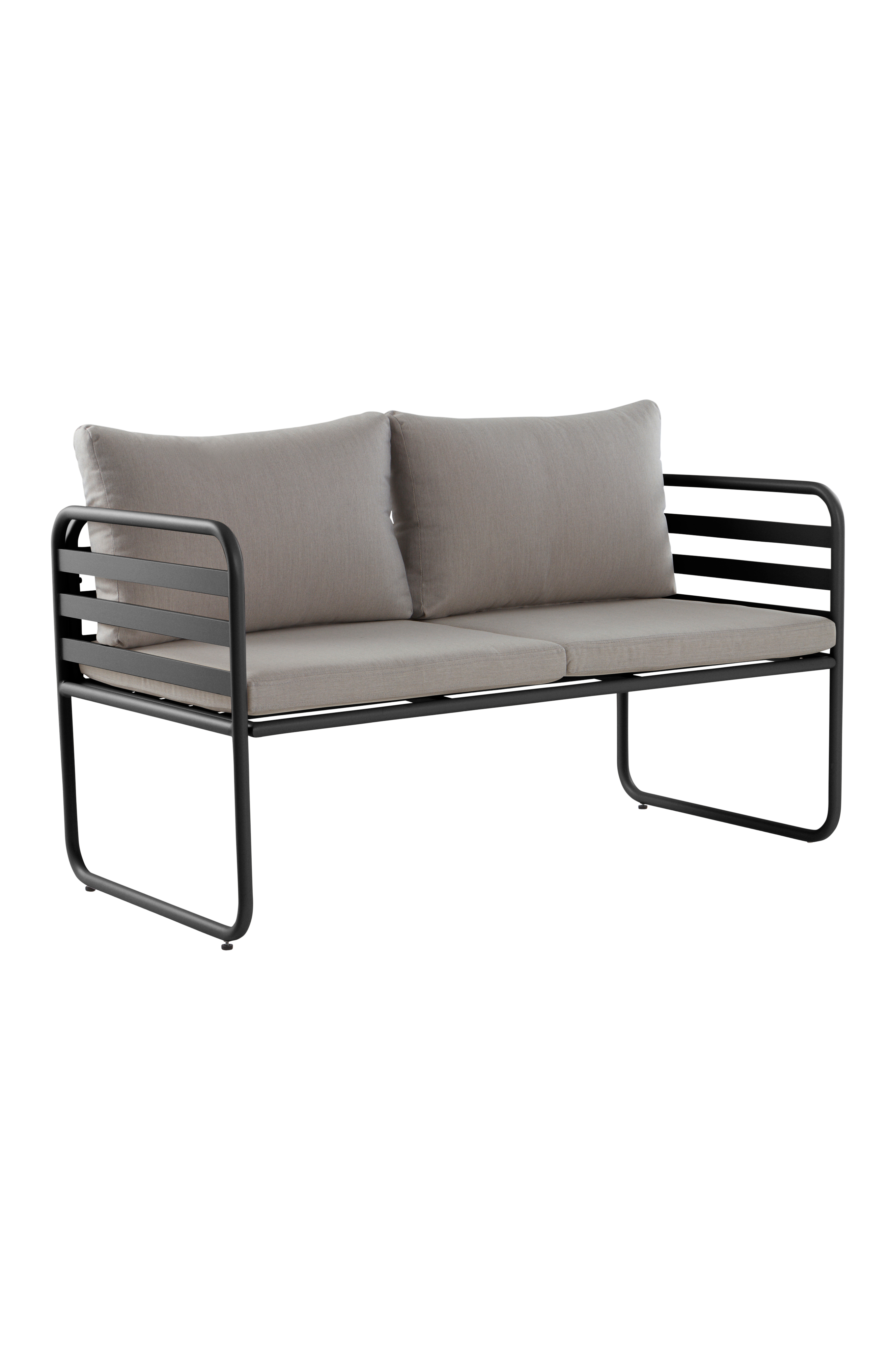 Loungesofa fremstillet i aluminium med pulverlakeret overflade. CADIZ er en pæn og fleksibel møbelserie til udendørs brug og tanken er, at du skal kunne møblere komfortabelt selv på et mindre areal. CADIZ er perfekt på altanen i byen eller på den lille terrasse uden for sommerhuset på landet. Designet er stilrent, hvor lige møder afrundet i en flot blanding. Sofaen har to blødt polstrede siddehynder og to behagelige ryghynder med polyesterbetræk. Betrækket er robust med slidstyrke på 30.000 Martindale. Aluminium er et praktisk materiale udendørs, som tåler vejr og vind, og som ikke ruster. Den matte farve gør, at metallet ikke blænder i sollys. Aftageligt betræk. Skal færdigsamles. Samlevejledning medfølger.