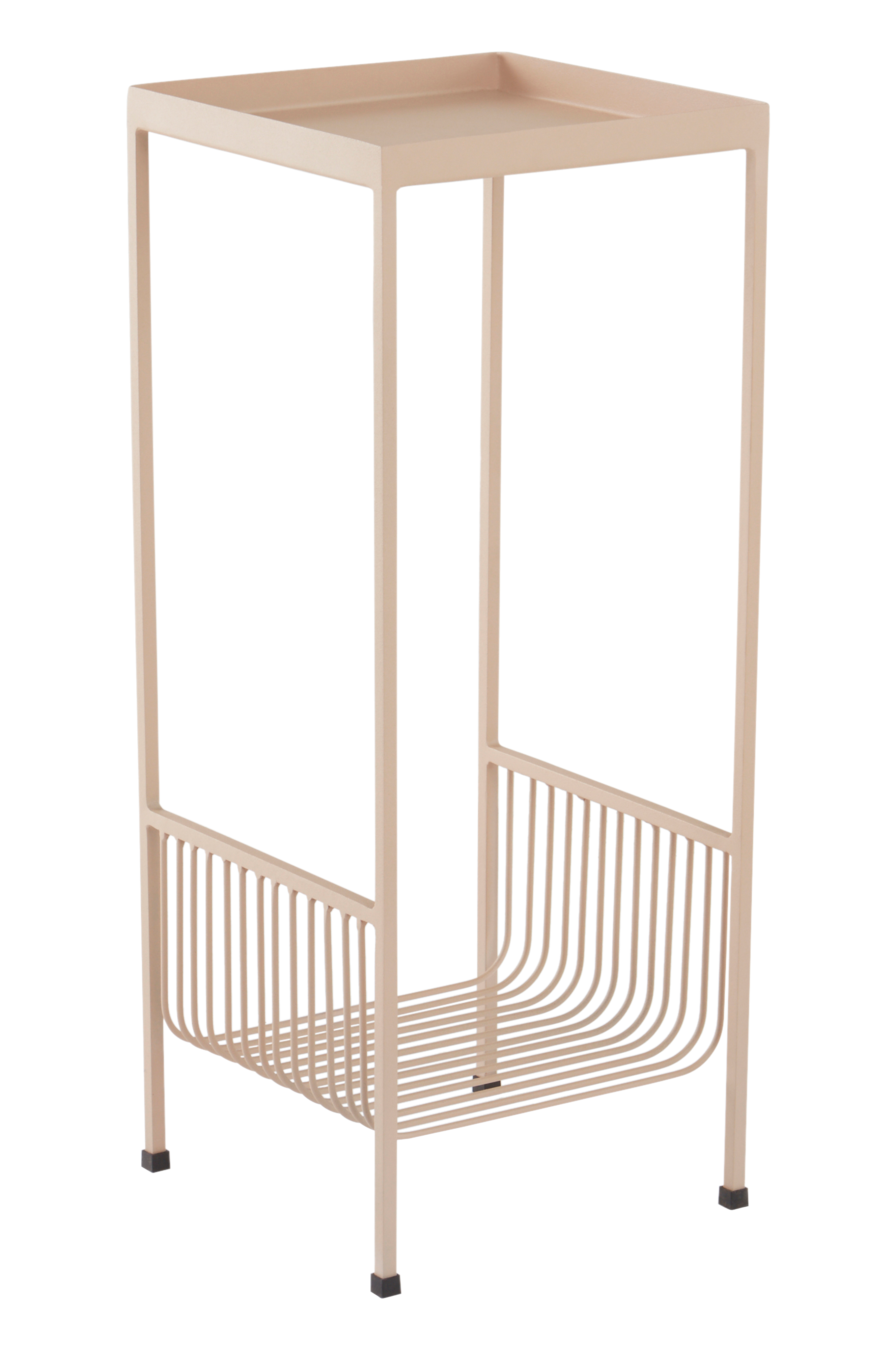 Sidebord af jern med en malet, mat overflade, der har en let kornet struktur. Sidebordet er meget allround og passer fint ved siden af lænestolen med favoritmagasinerne let tilgængelige på hylden under. Og et kreativt øje ser med det samme, at dette er en fantastisk flot piedestal til smukke, grønne planter. Eller hvorfor ikke et natbord med retrolook? Gummidupper på benene beskytter overfladen.