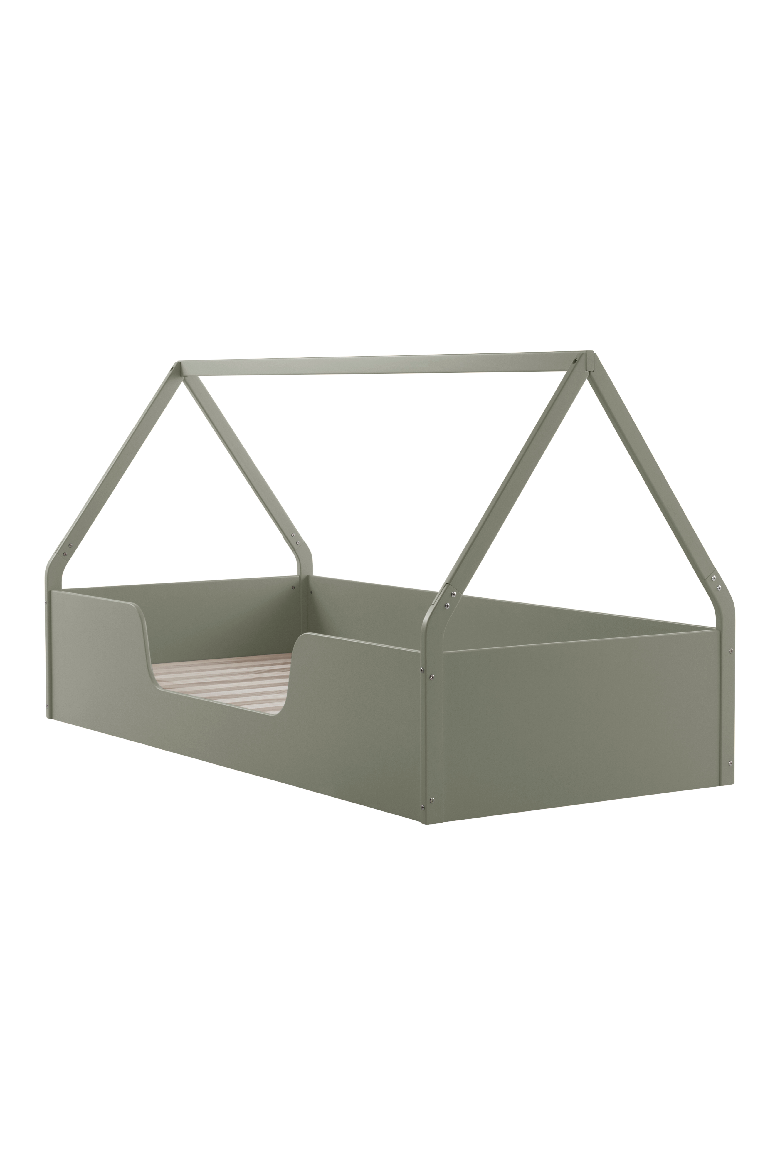 Sengeramme med ramme af massivt fyrretræ, sider af MDF og bund af ubehandlet krydsfiner. Både fyrretræ og MDF er FSC-mærket. Farven er vandbaseret. Den ene langside har en sænket kant, så små børn selv kan kravle ind og ud. En hyggelig seng gør det sjovere at gå i seng, for hvem har lyst til at kede sig? Med masser af puder og et blødt sengetæppe bliver det en hyggekrog i løbet af dagen.