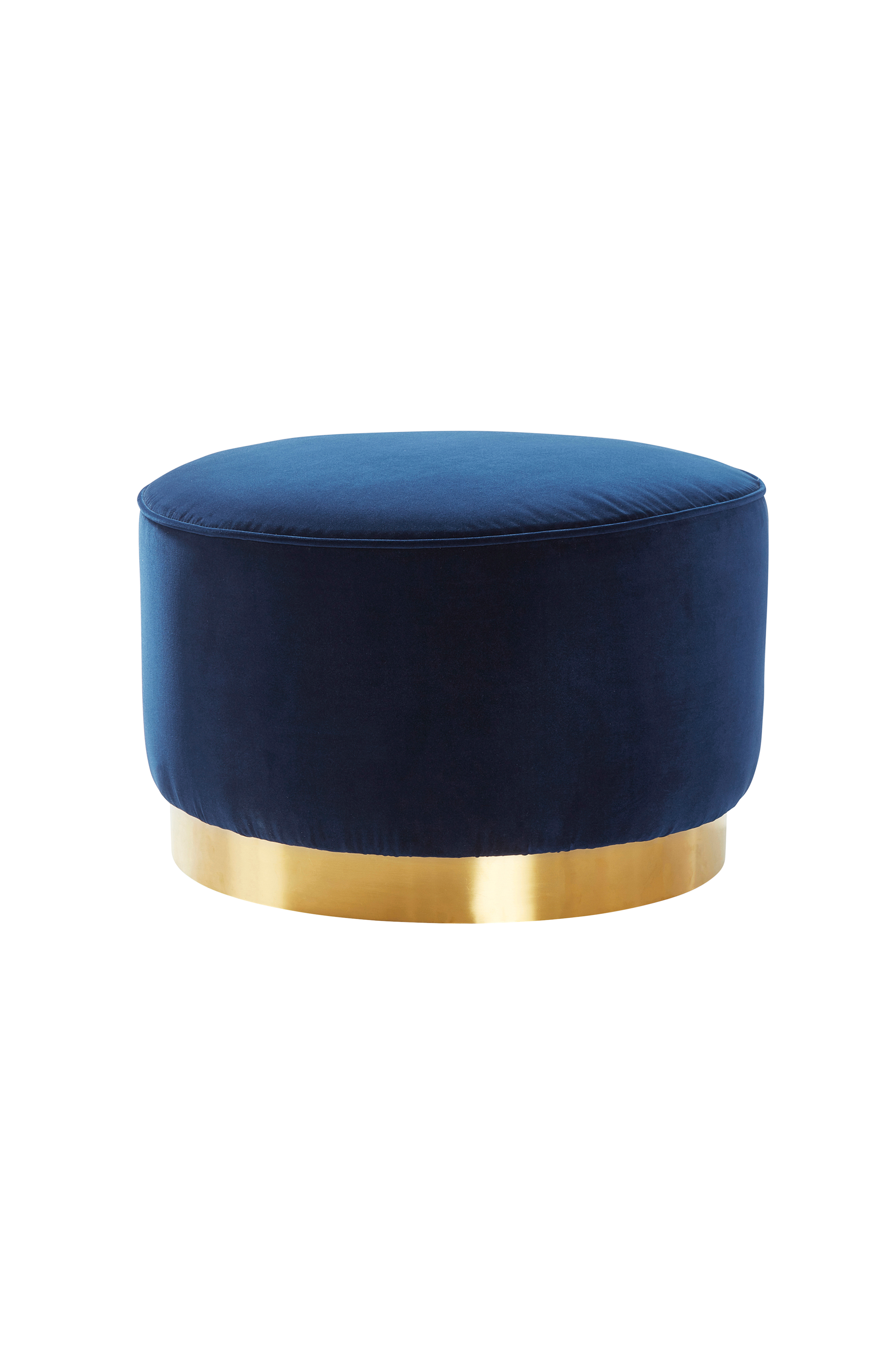 Beskrivelse: Rund siddepuf med fast velourbetræk og træramme og fod af messing. Kombinationen af zigzagfjedre, elastisk kerne og skumgummifyld øger siddekomforten.