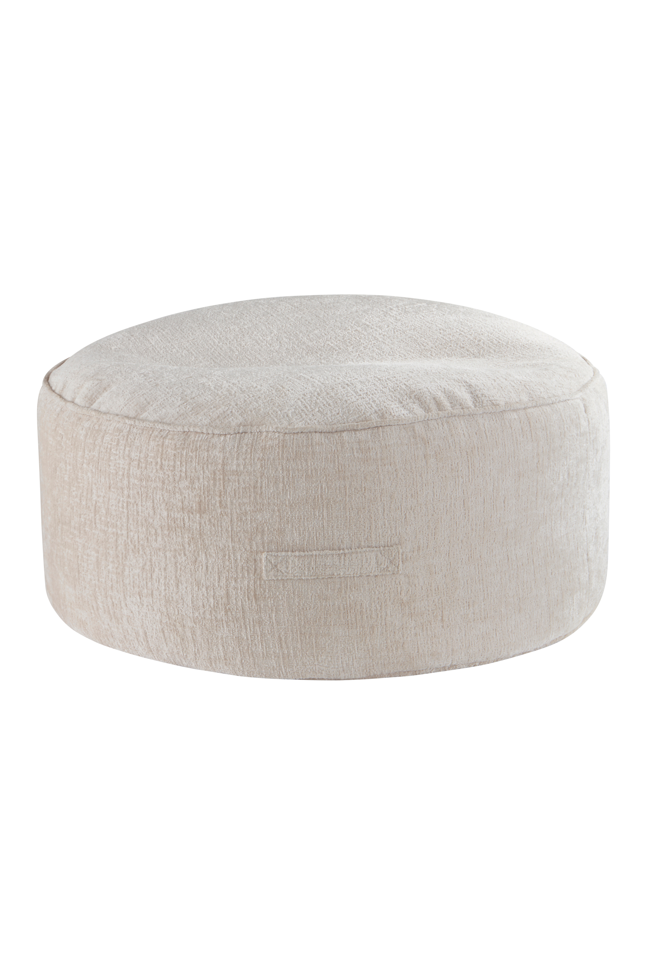 Siddepuf med loddent stof i polyester og fyld af plastkugler, som gør den blød. Puffen har en paspoleret kant, og håndtaget på siden gør det nemt at flytte den og bære den rundt. Det robuste stof har Martindale på 40000 og tåler slitage. Betrækket er ikke aftageligt.
