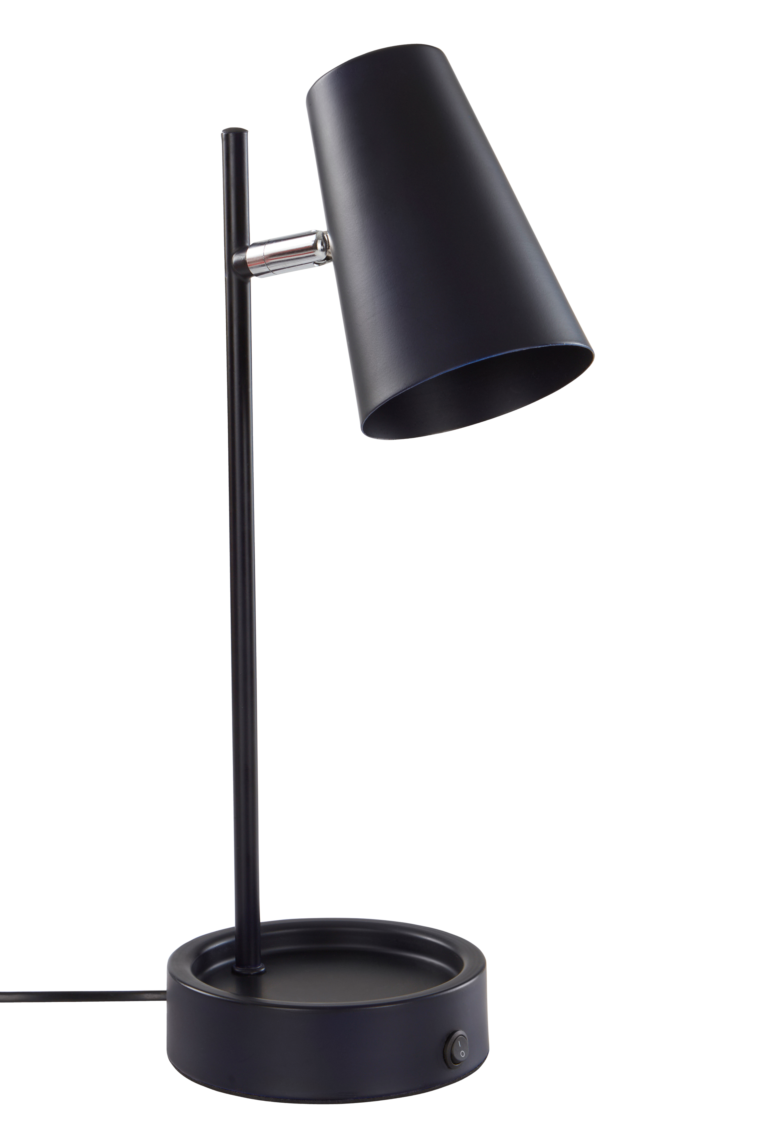 Finurlig skrivebordslampe til børn, komplet med et praktisk rum til små skatte. Den er fremstillet af malet jern og har en USB-C-port, så du nemt kan oplade f.eks. din mobiltelefon. PVC-ledning med afbryder på lampefoden.