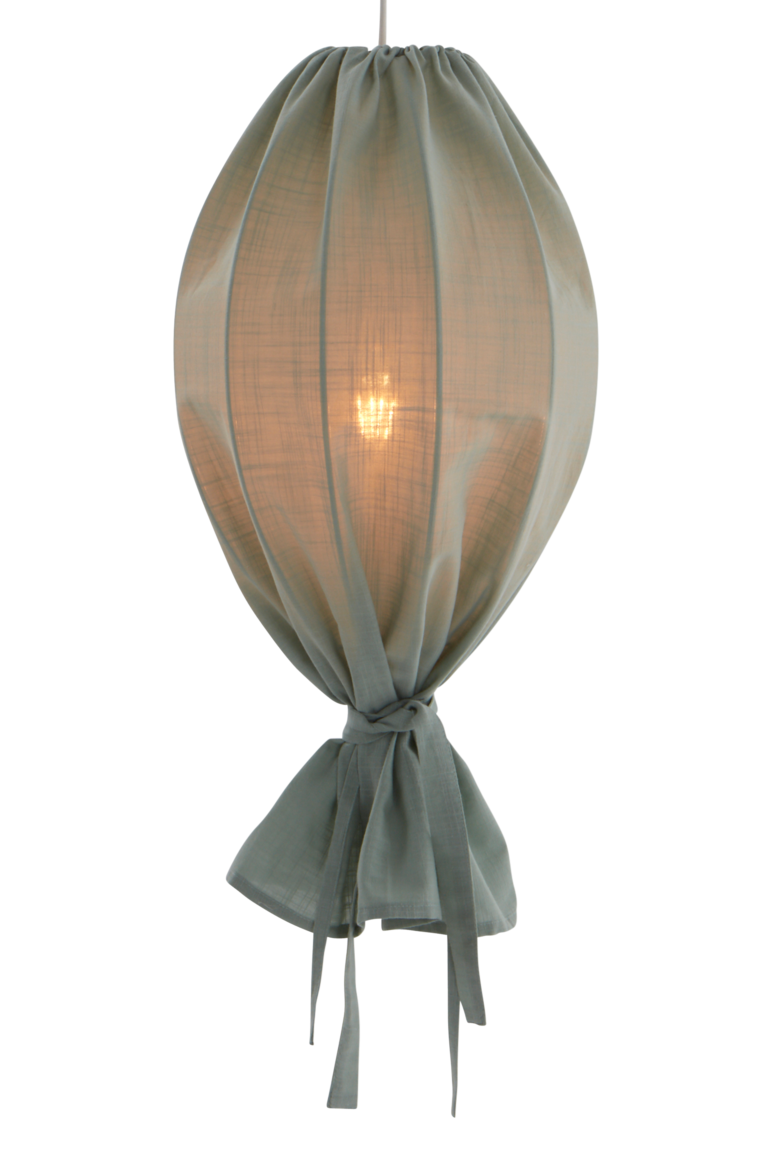 Loftlampe af fint hørstof som bindes under lampen med matchende bånd. Lampen har metalstativ, der giver en flot form og farven på stoffet giver et stemningsfuldt lys. Hvid stofledning, baldakin af plast. Lampen er ujordet, klasse 2. På grund af EU-regler kræves en separat loftkontakt i visse lande. Loftkontakten skal være ujordet (klasse 2) og købes separat.
