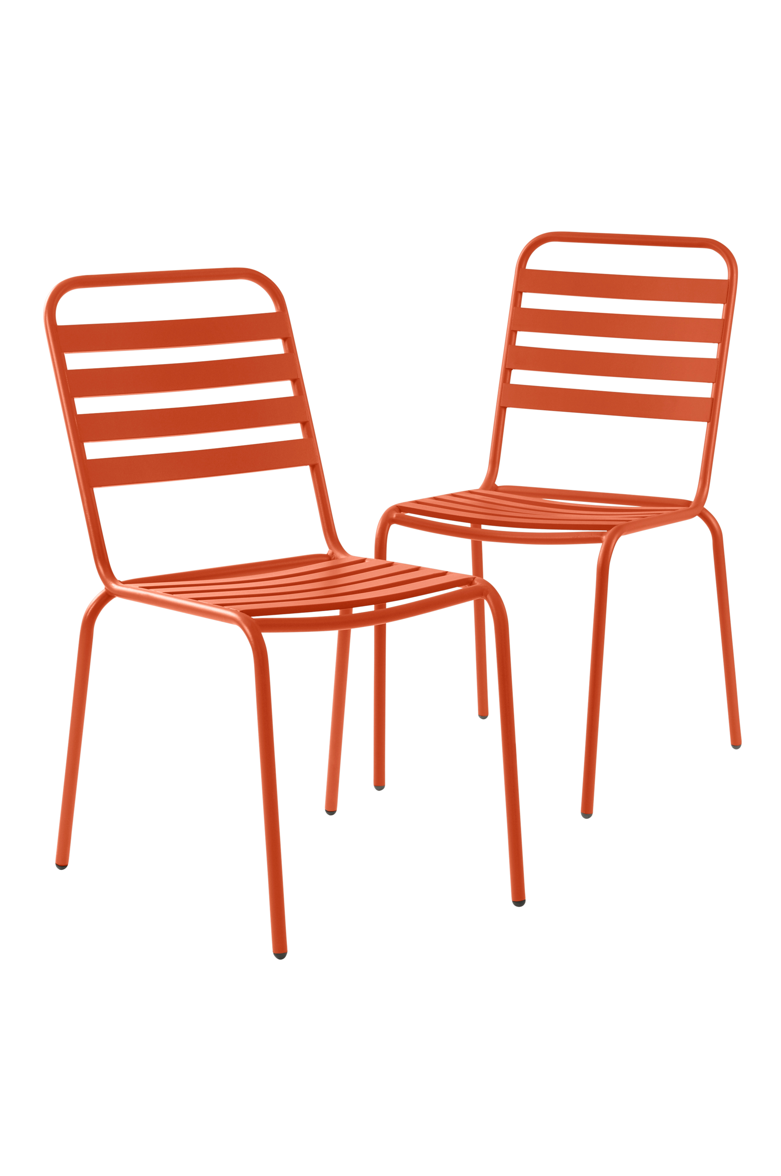 2-pak stole af pulverlakeret aluminium. Stolene er praktiske til ethvert formål og den lille fikse model passer også fint på altanen. DEIA er i aluminium, så du kan have stolene stående udendørs, uden at de ruster, og de er lette at tørre af. Stolene er stabelbare.