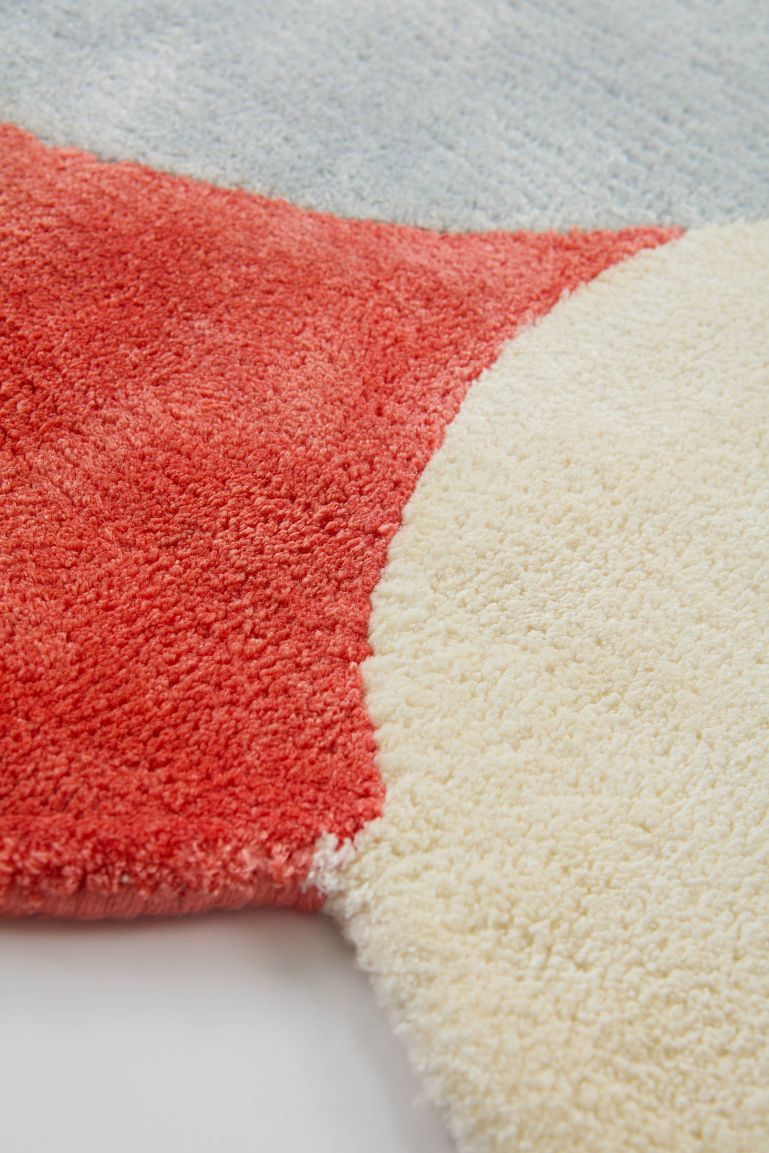 EMERENTIA-tæppet har et kunstnerisk design med en organisk form og en luksuriøs viskosestruktur. Dets distinkte form tilfører en stilfuld flair til moderne indretning og forener komfort og visuel appel.