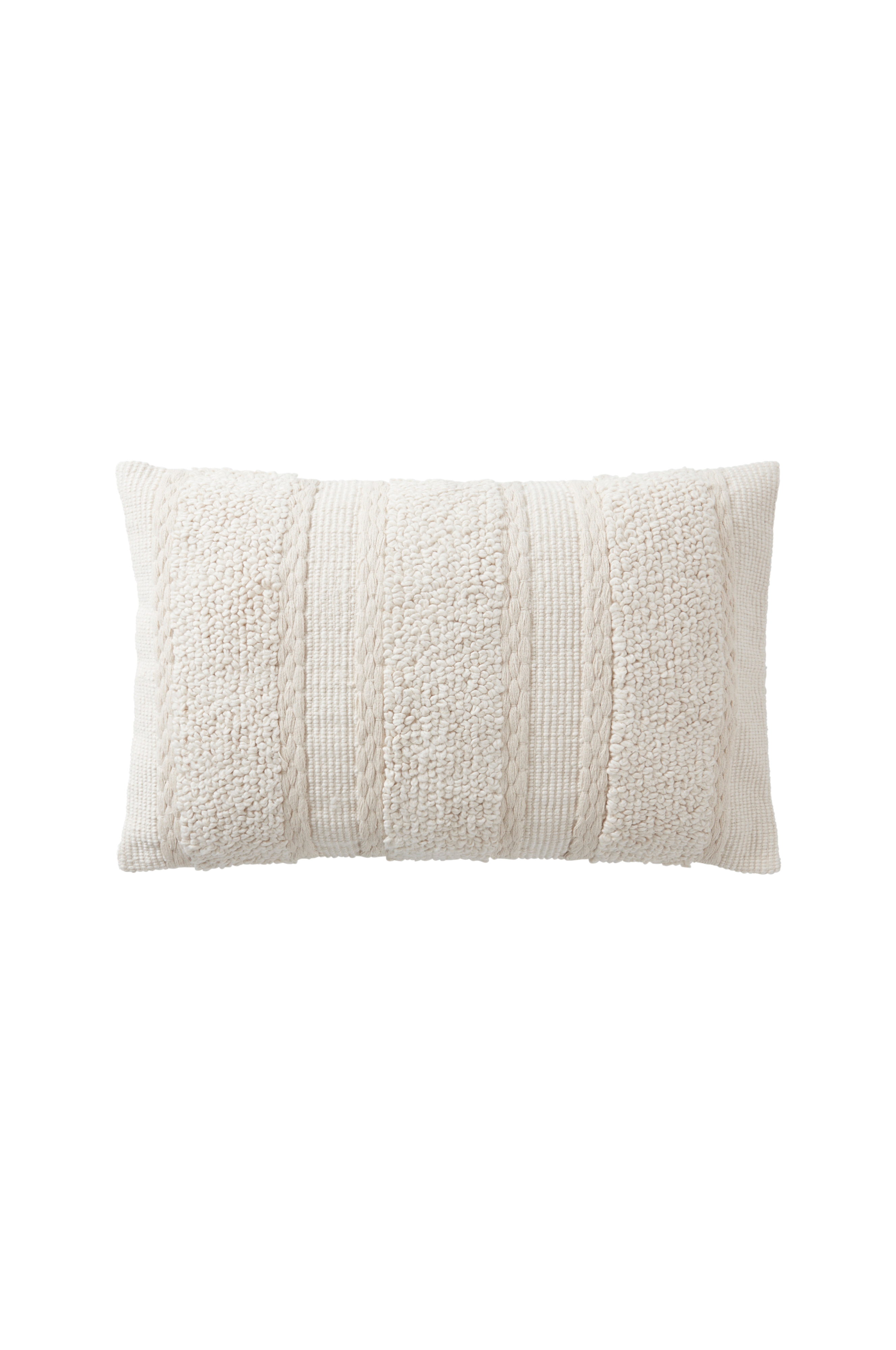 1-pak håndvævet pudebetræk af bomuld i en neutral nuance med kontrastfarvede striber. Lynlås i kant forneden.