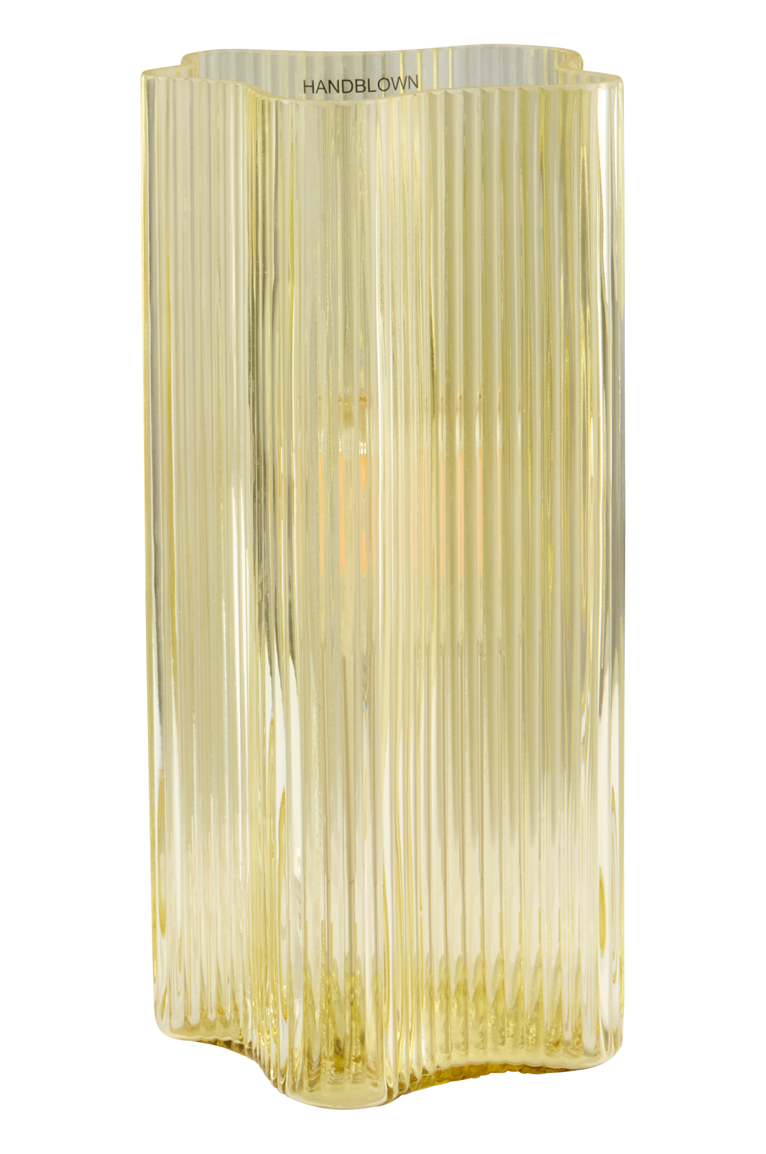 Bordlampe lavet af glas med form som en blomst - når naturen inspirerer er den smuk. Lampen har opadrettet lys kombineret med belysning gennem glasset. Glasset har strukturstriber, der dæmper lyset og giver et smukt skær. Lampens holder er af metal og ledningen er transparent. Strømafbryderen sidder på ledningen. Lampen er ujordet, klasse 2.