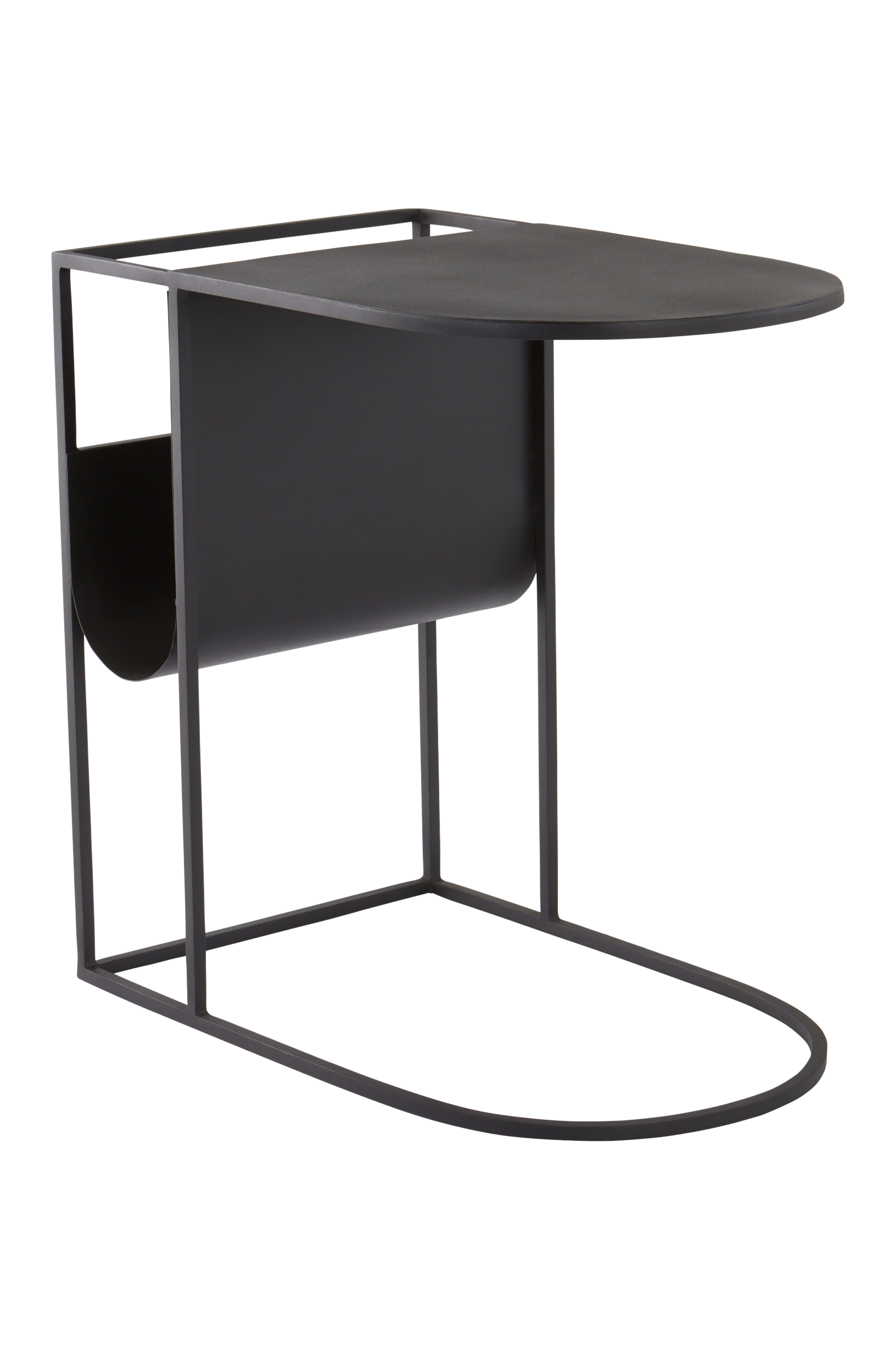 Sidebord af jern med malet, mat overflade med let struktur. Sidebordet har et spændende design, den ene side er afrundet og den anden side har indbygget aviskurv. FLIMS er designet til dig, der vil nyde en god kaffe og læse avisen i din yndlingslænestol.