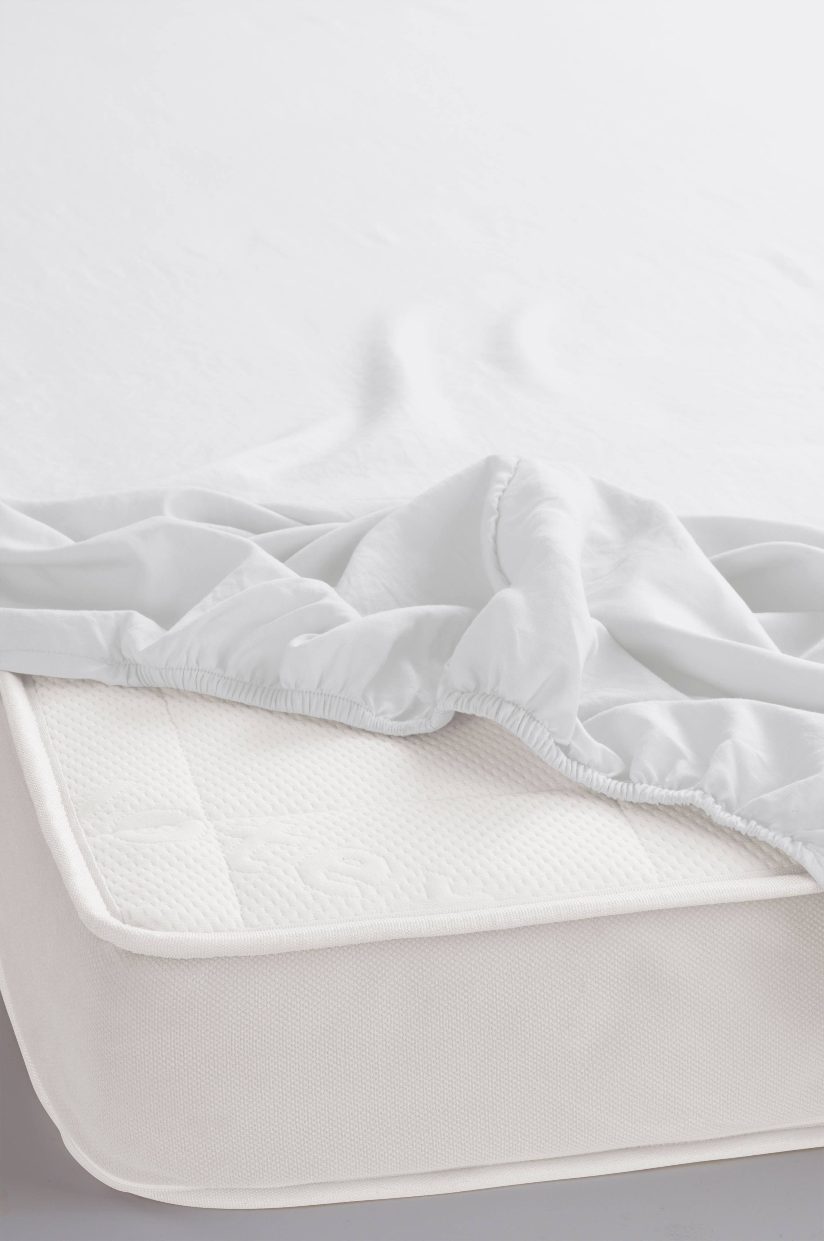 Behageligt, men meget tyndt stof, strækkes let ud og bliver lidt 'poseformet' på madrassen