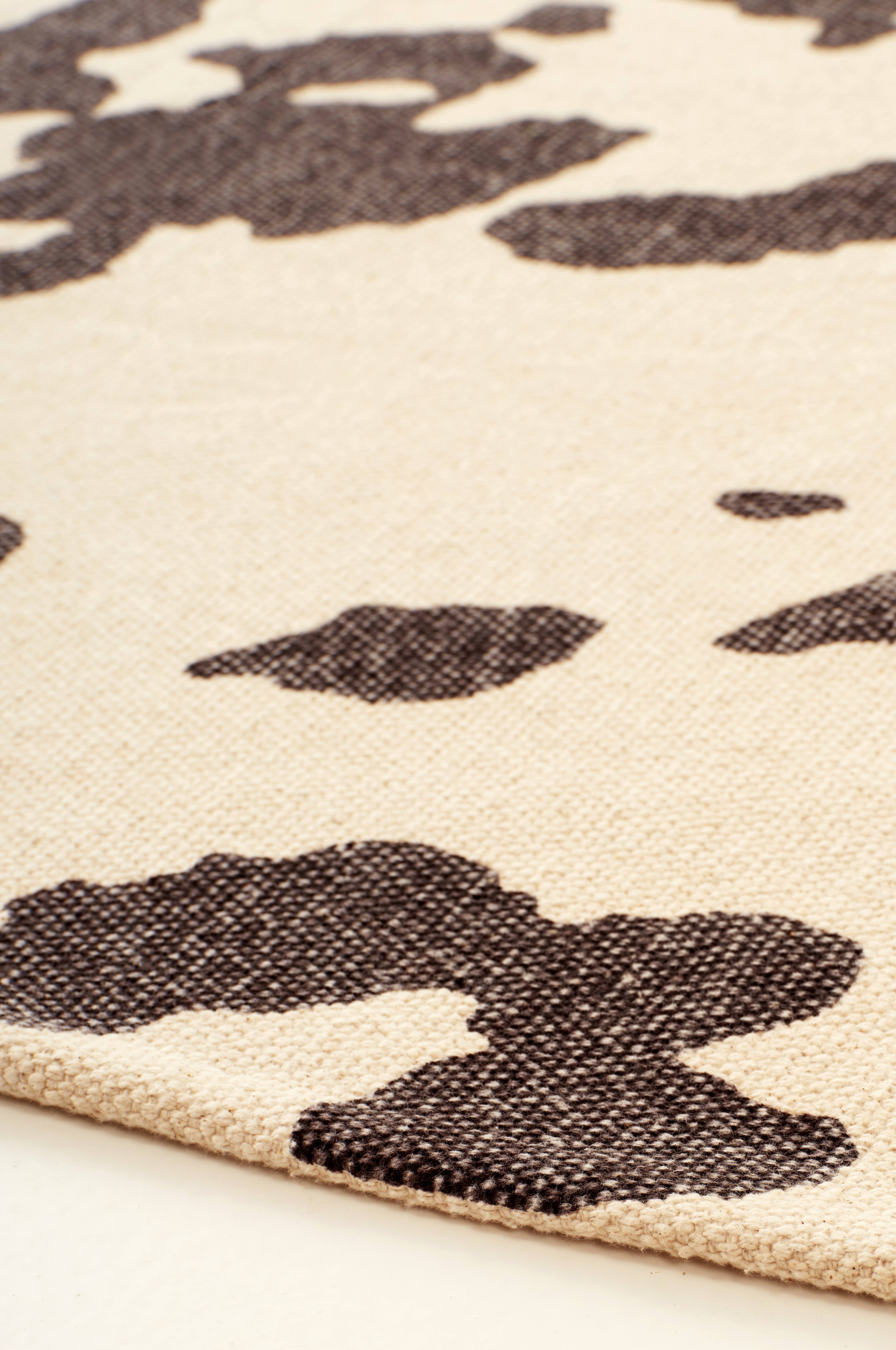 FLORA-tæppet med et dristigt ko-mønster giver ethvert rum et markant præg. Det er fremstillet af blødt bomuld og passer til både moderne og rustikt interiør. Det er perfekt til at udtrykke individualitet og bliver et fængslende omdrejningspunkt.