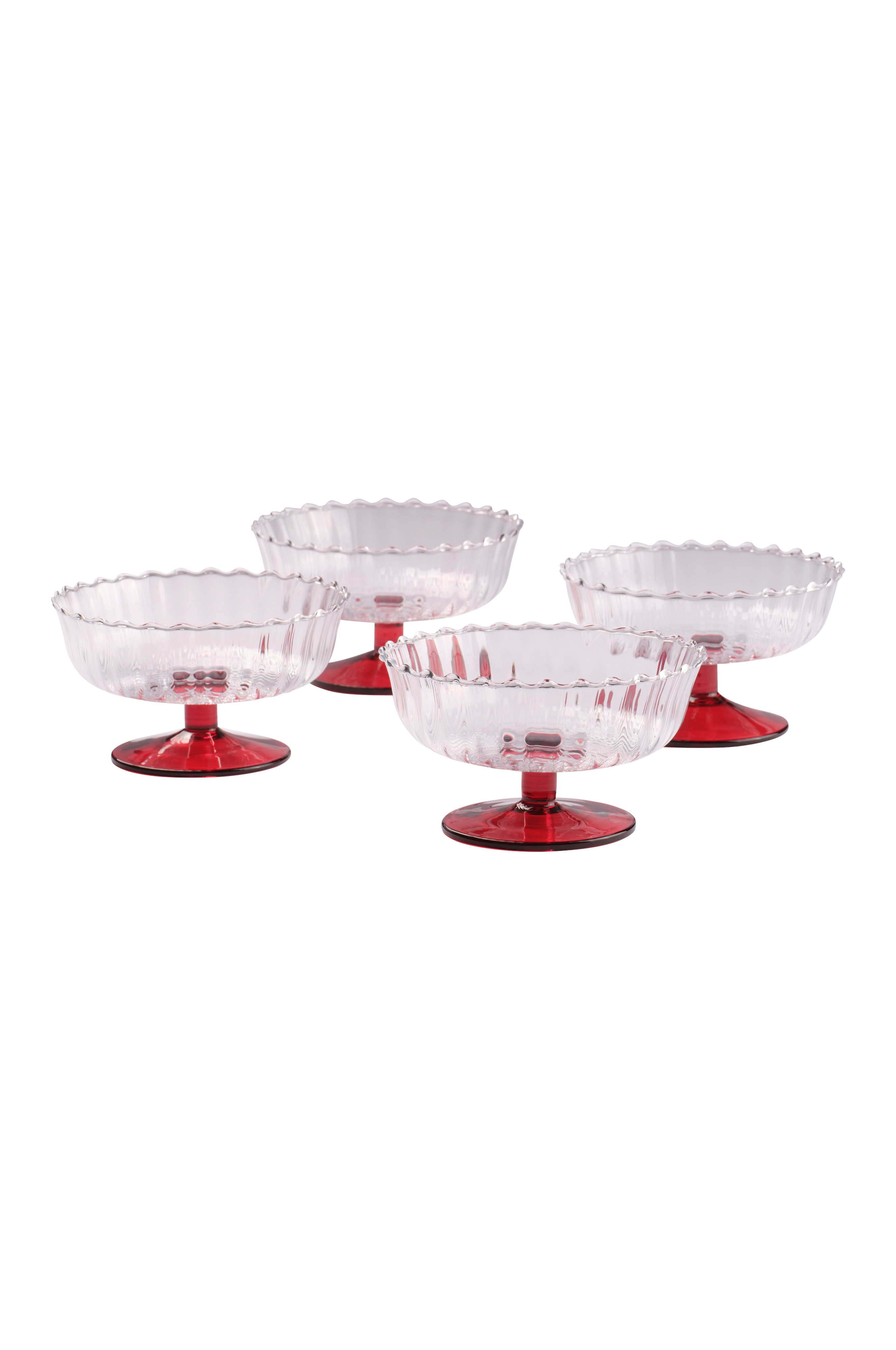 FLORA dessertskålesættet tilføjer med sine fine detaljer og farverige fod unik flair til ethvert bord. Dette sæt med fire skåle er ideelt til underholdning eller til at nyde en elegant dessertoplevelse derhjemme.